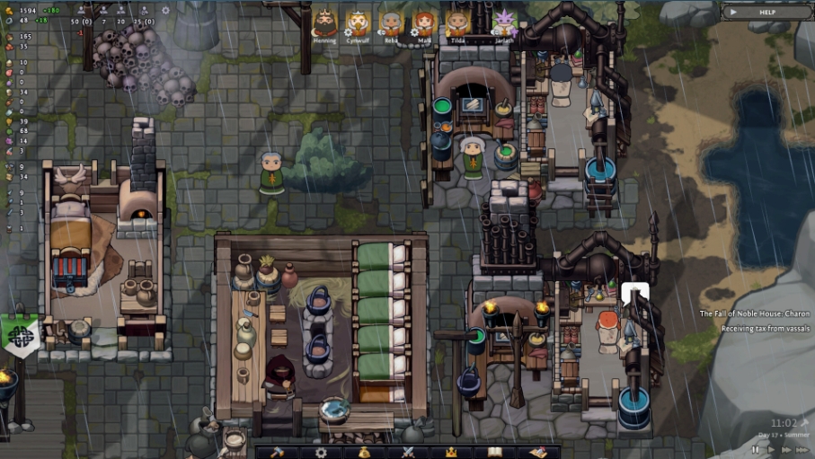 Your family rules from on high, members working together or against each other to control the city, kingdom, and political intrigues. Each noble has unique strengths, weaknesses, and ambitions driving complex relationships amongst themselves and foreign rulers. Witness blossoming friendships, drunken misadventures, and brutal assassinations as your nobles command peasants, lead armies, and study ancient texts of knowledge.