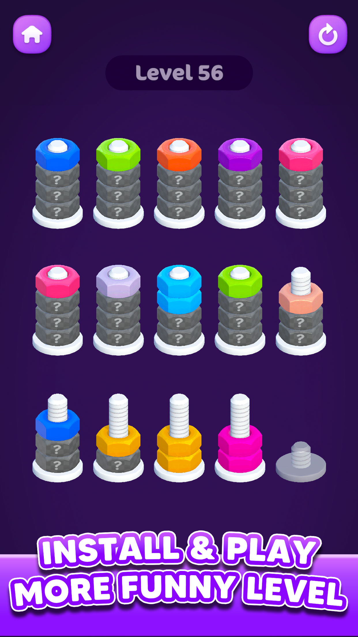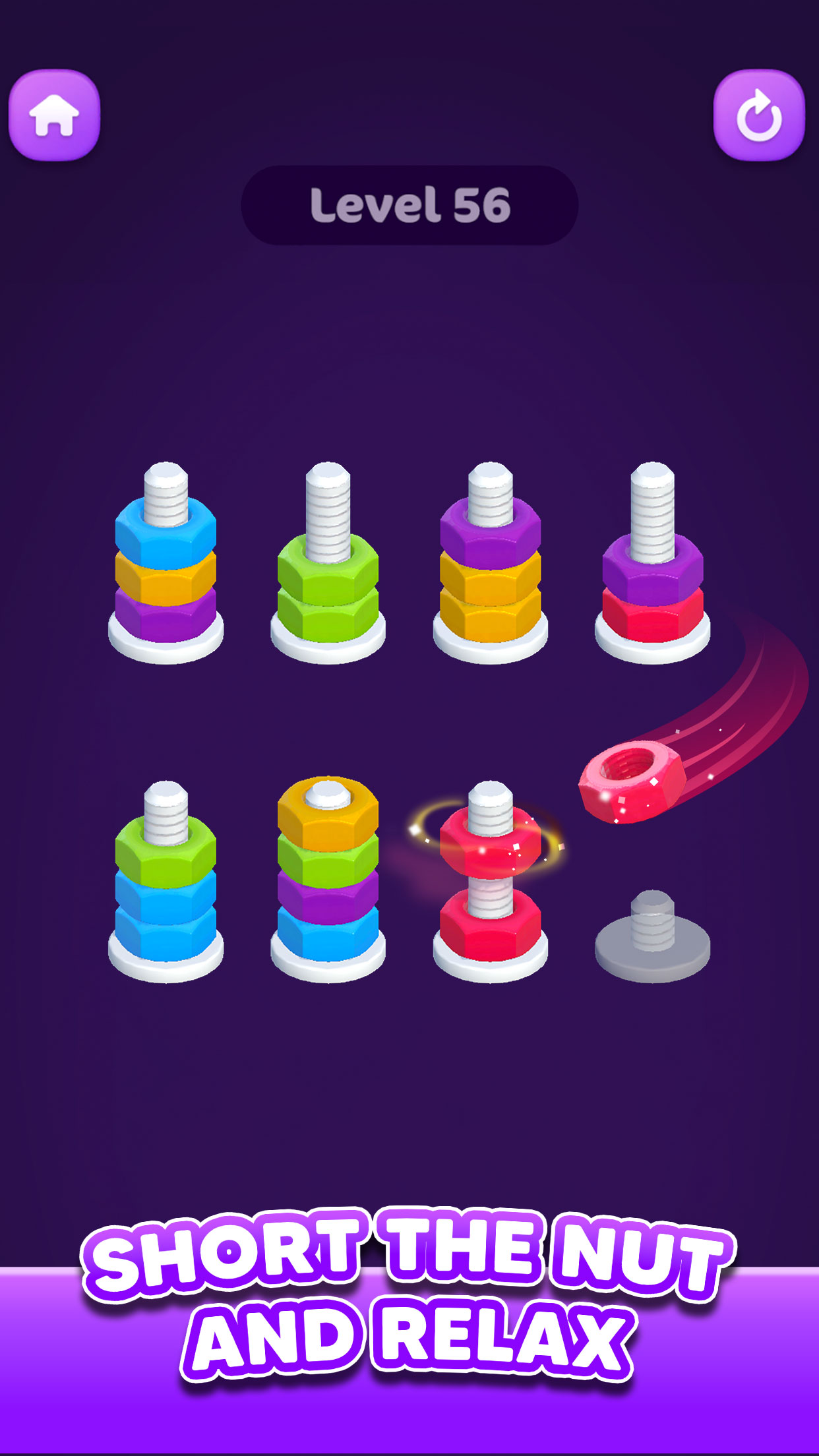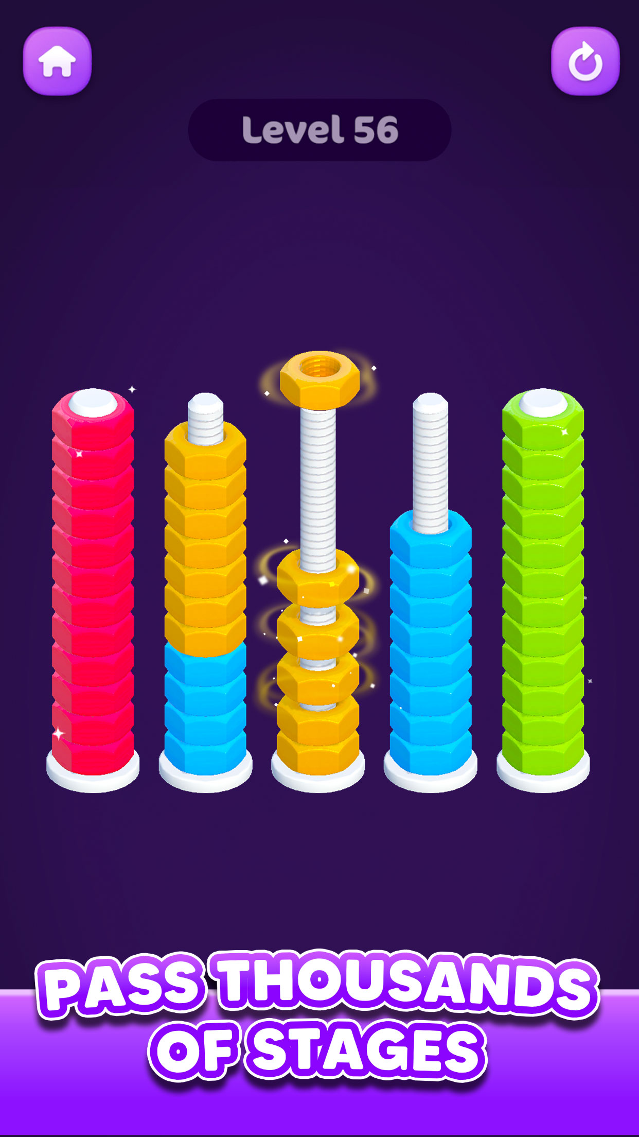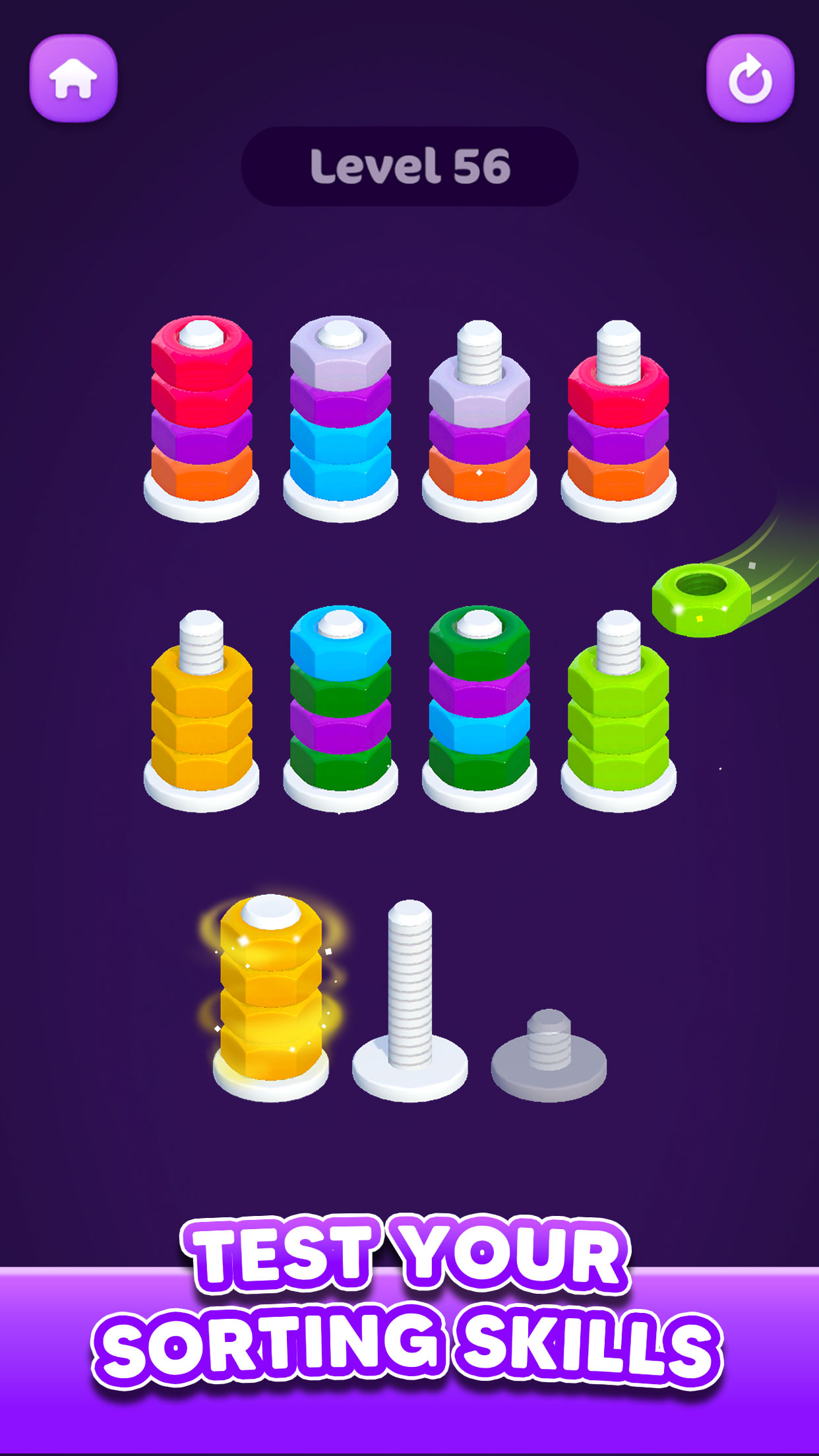 Nut Sort предлагает игрокам множество уровней с возрастающей сложностью. Каждый успешно завершенный уровень приносит удовлетворение и ощущение прогресса. Однако в игре отсутствует система достижений или дополнительные элементы кастомизации, что могло бы увеличить ее долгосрочную привлекательность. Несмотря на это, постепенное усложнение уровней мотивирует продолжать игру.