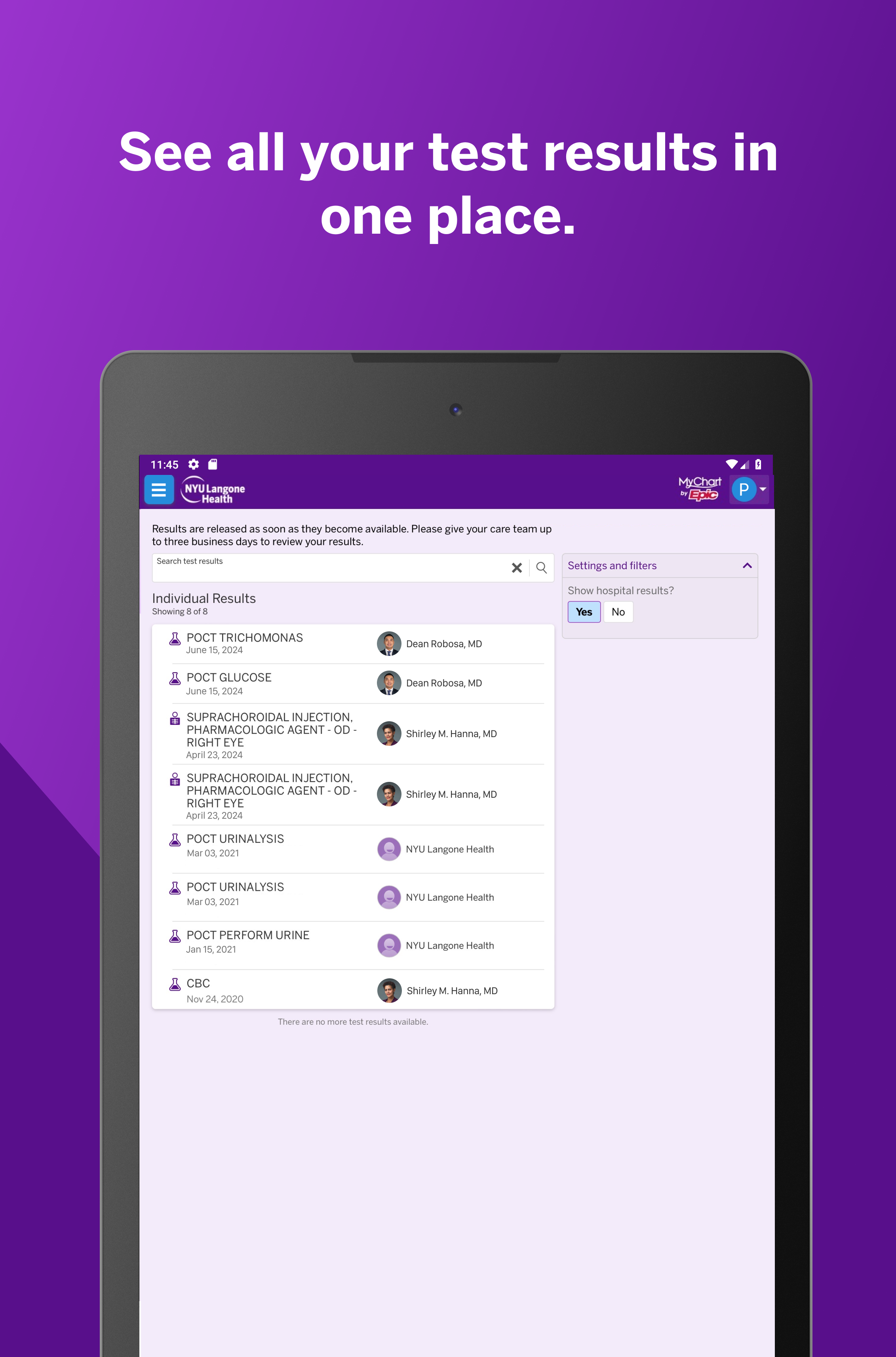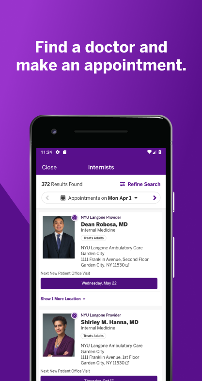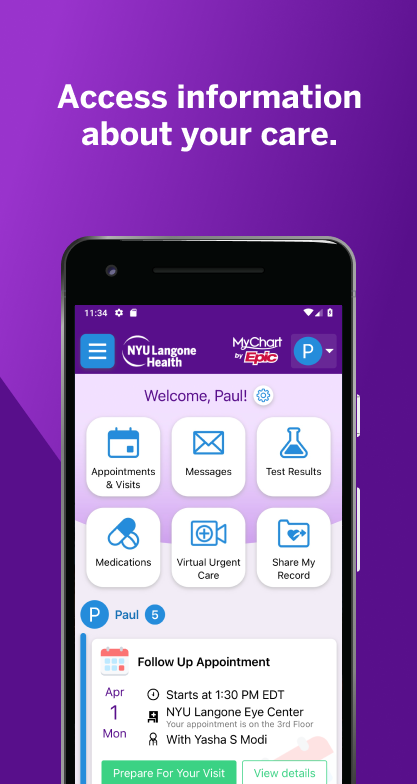 Используйте наше приложение NYU Лангоне здравоохранения, чтобы получить доступ к медицинской информации в любом месте.