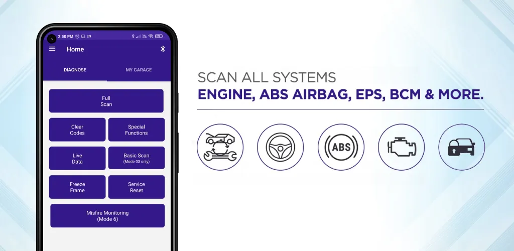 Беспроводное подключение. Попрощайтесь с запутанными кабелями и воспользуйтесь удобством беспроводной связи GaragePro. Наше приложение легко подключается к вашему сканеру OBD2 с помощью Bluetooth, устраняя необходимость в громоздких шнурах.
