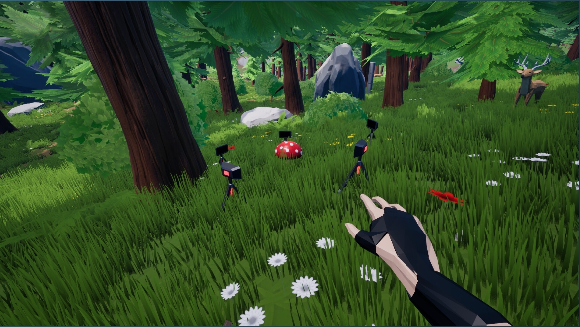 On the other hand, the deer players are tasked with the challenging role of hiding from the hunter. They must use their environment wisely and blend in with AI deer that are scattered throughout the map. It is crucial for the deer to find and eat food to keep their hunger levels in check. However, they must be careful with their timing, as eating at the wrong moment can expose their location and put them at risk of being caught.