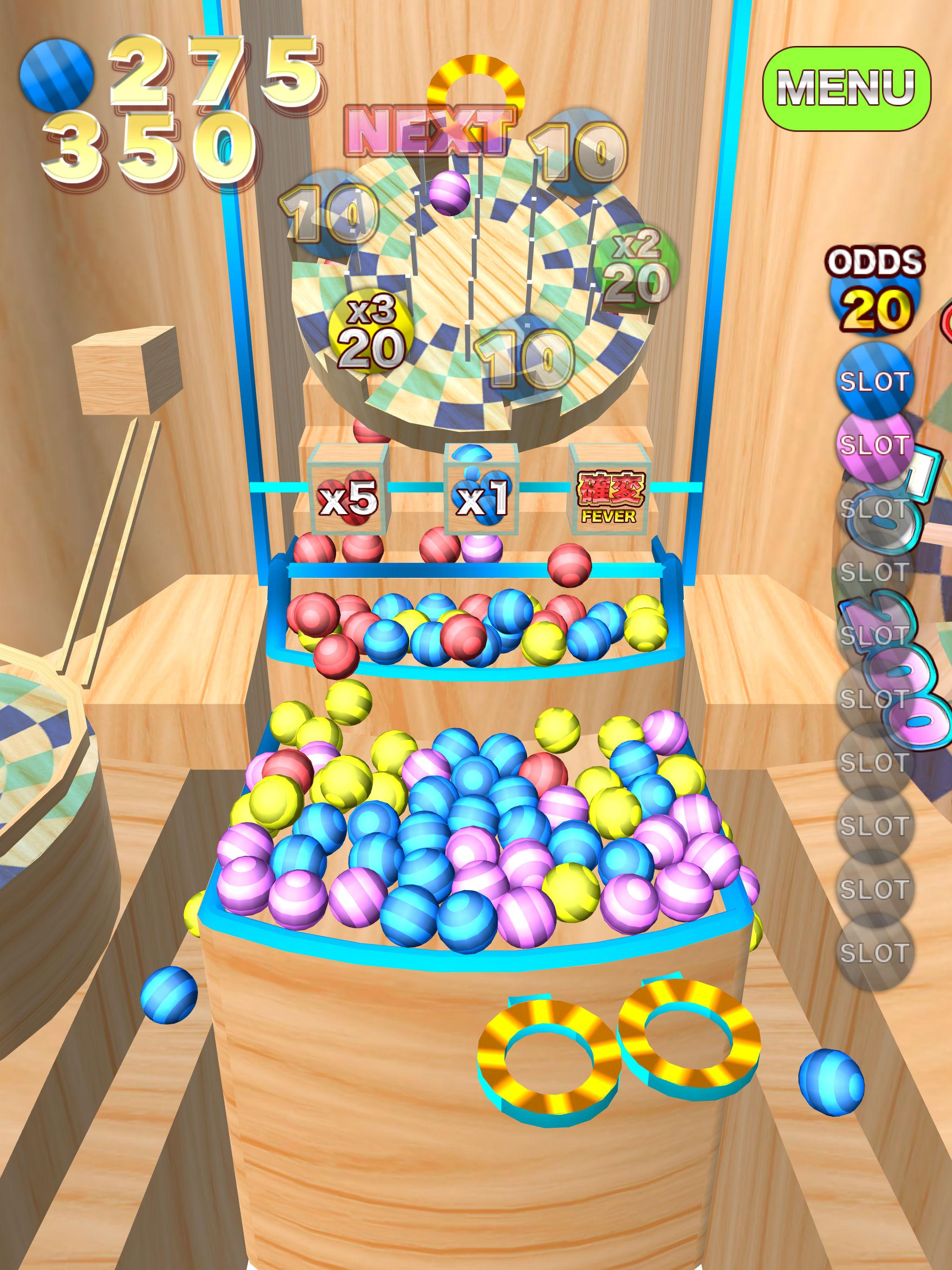 Игры с падением монет, в которые можно играть, где бы вы ни находились! Это игра с монетами, но где же монеты?! Поле заполнено только шариками! Кидайте шарики повсюду вместо монет! Стреляйте шариками, а затем выталкивайте их толкателем. Шары, которые падают перед вами, ваши! И каждый шарик имеет шанс превратиться в лотерею, основанную на физике! Это рождение совершенно нового опыта игры с толкателем!