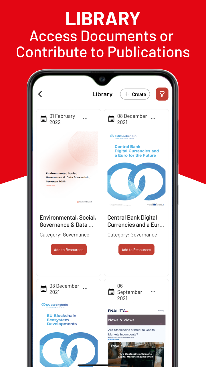 • Доступ к ресурсам проекта, таким как сети, события, публикации, видео, опросы и средства массовой информации.