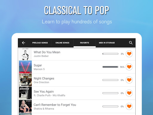 • Разучивайте тысячи популярных музыкальных композиций