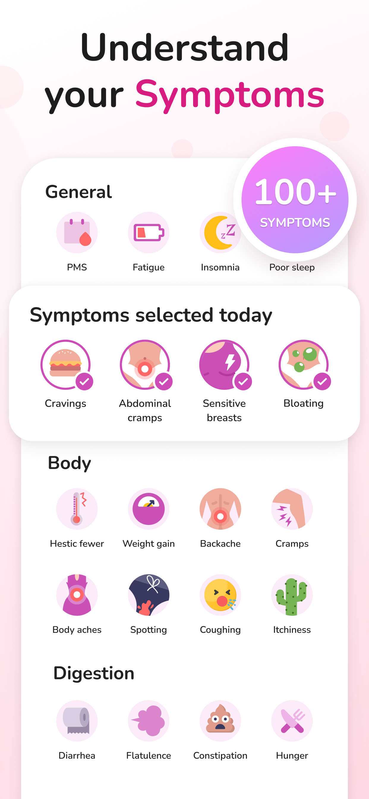 Весьма удобно в использовании, при том, что обладает многочисленными функциональными возможностями. Отслеживает нерегулярные менструации, вес, температуру, настроение, ток крови, симптомы и т.д. Превосходно в прогнозировании фертильных дней, овуляций и менструаций. Приложение может приспособится под ваши собственные предыдущие менструальные циклы и точно предсказывать важные дни, которые вас интересуют.