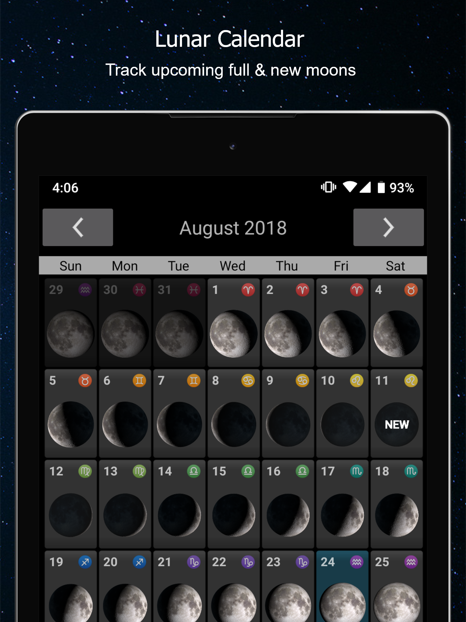 Данное приложение — это эффективный способ следить за луной, ее фазами, лунным календарем и всем, что связано с Луной.