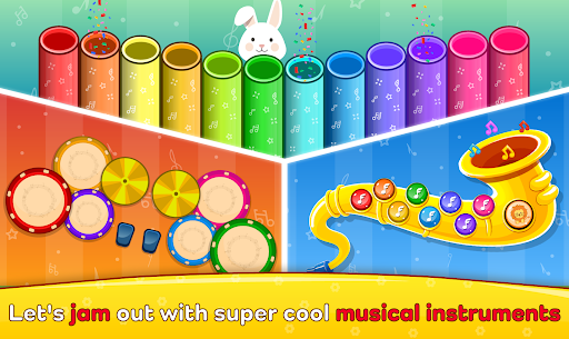 Learn to play piano, xylophone, and other musical instruments. Piano kids music offers a variety of exciting, fun, learning, interactive, and educational games for toddlers, including ABC, 123, animal sounds, nursery rhymes, and many more!