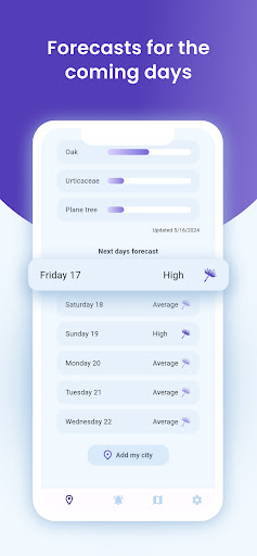 Настройте приложение подсчета пыльцы, добавив свои любимые города 🏙️. Получайте персонализированную информацию об уровнях аллергенов и погодных условиях в важных для вас местах. Это приложение гарантирует, что вы получите актуальную информацию, соответствующую вашим потребностям.
