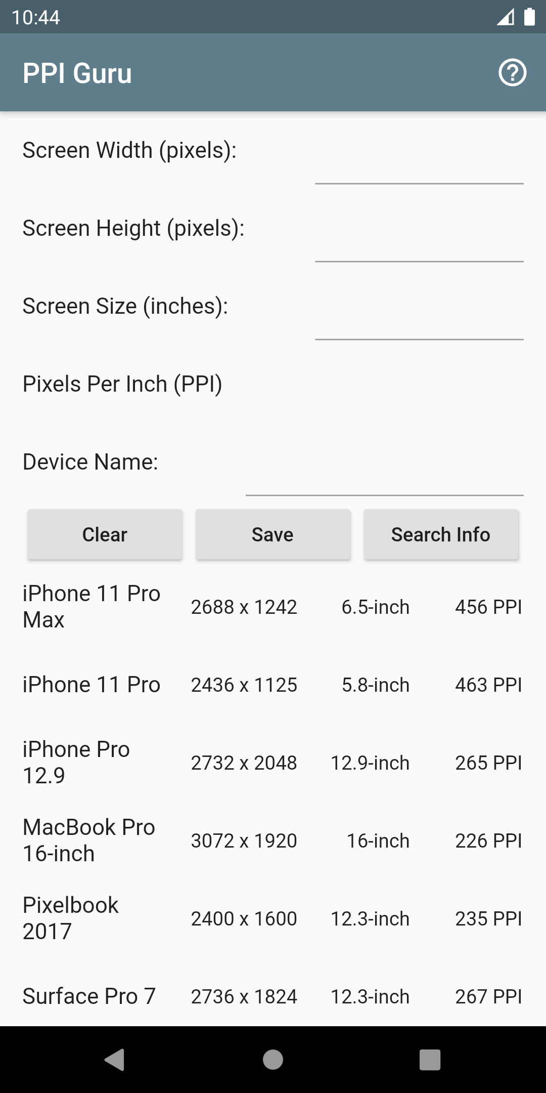 PPI Guru - это утилита для расчета PPI дисплея (пикселей на дюйм) устройств.