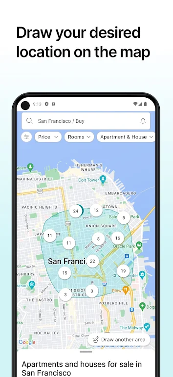 Используйте наш интуитивно понятный инструмент для создания карты, чтобы нарисовать область поиска.