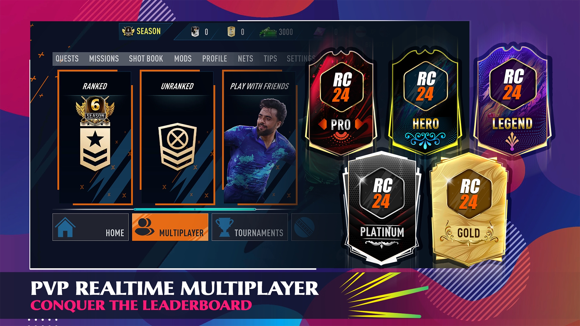 Real Cricket™ 24 предлагает широкий выбор международных и внутренних турниров, в том числе RCPL 2022, World Cup 2023, World Test Challenges и т. д.