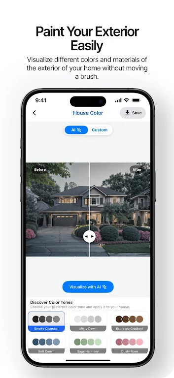 · Преображение: мгновенно пробуйте новые цвета стен или материалы, соответствующие вашему настроению или стилю.