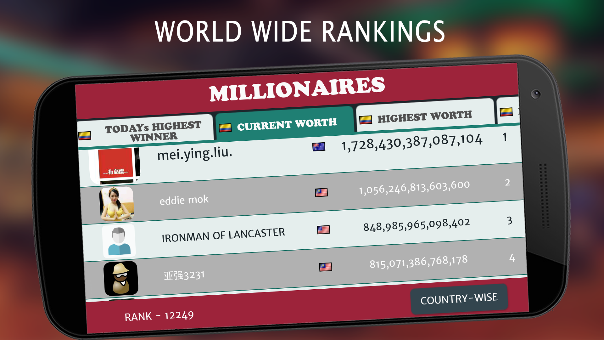 •Таблица лидеровдля сравнения с друзьями и просмотра рейтингов виртуальных денег и предметов по странам и миру.