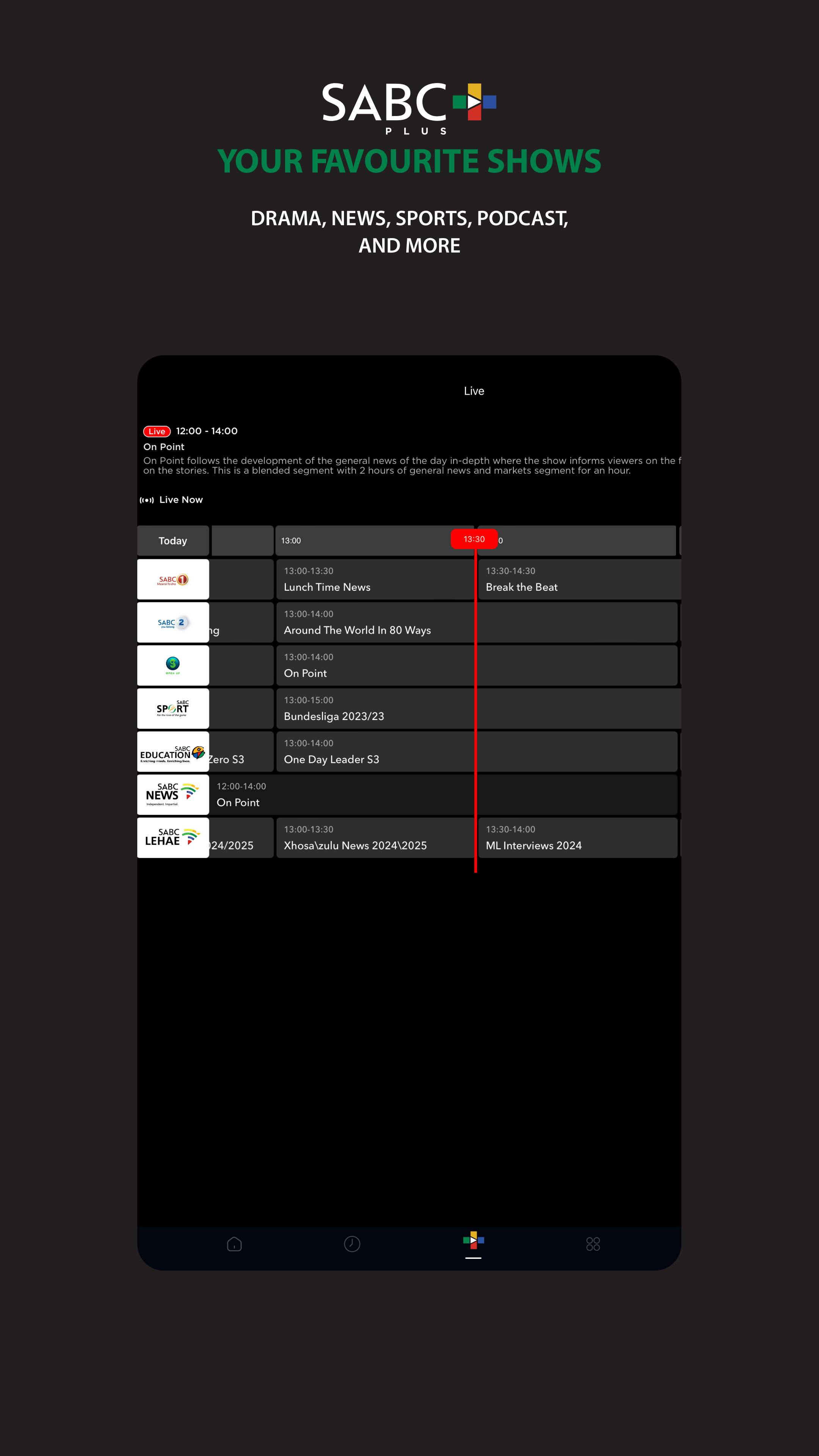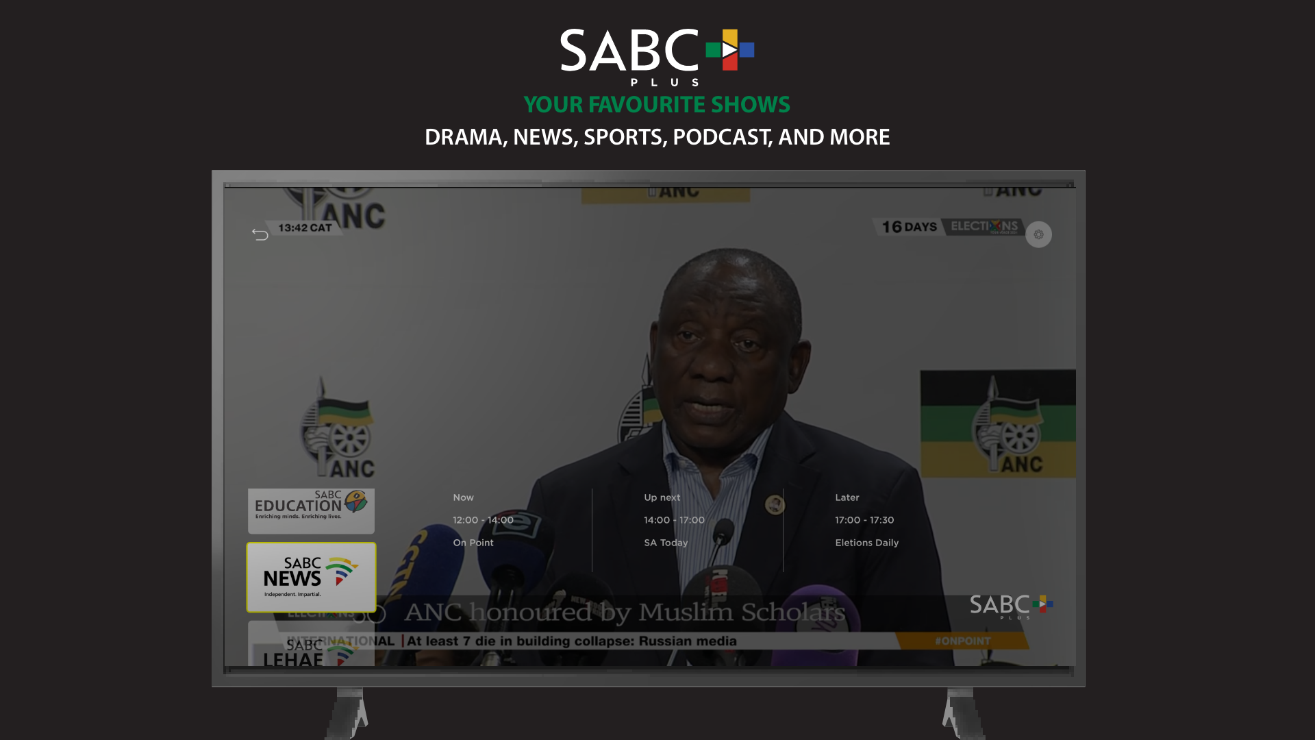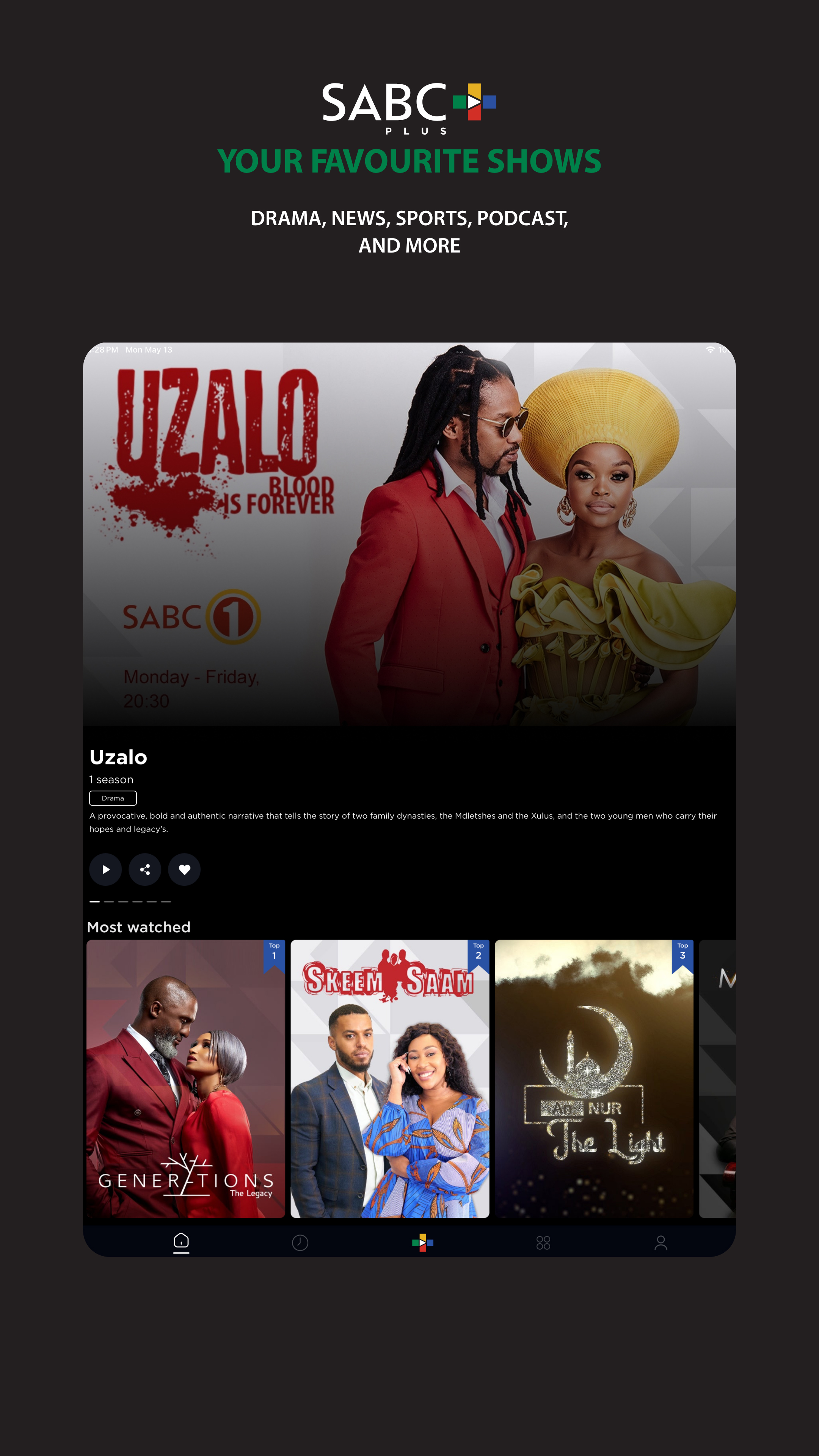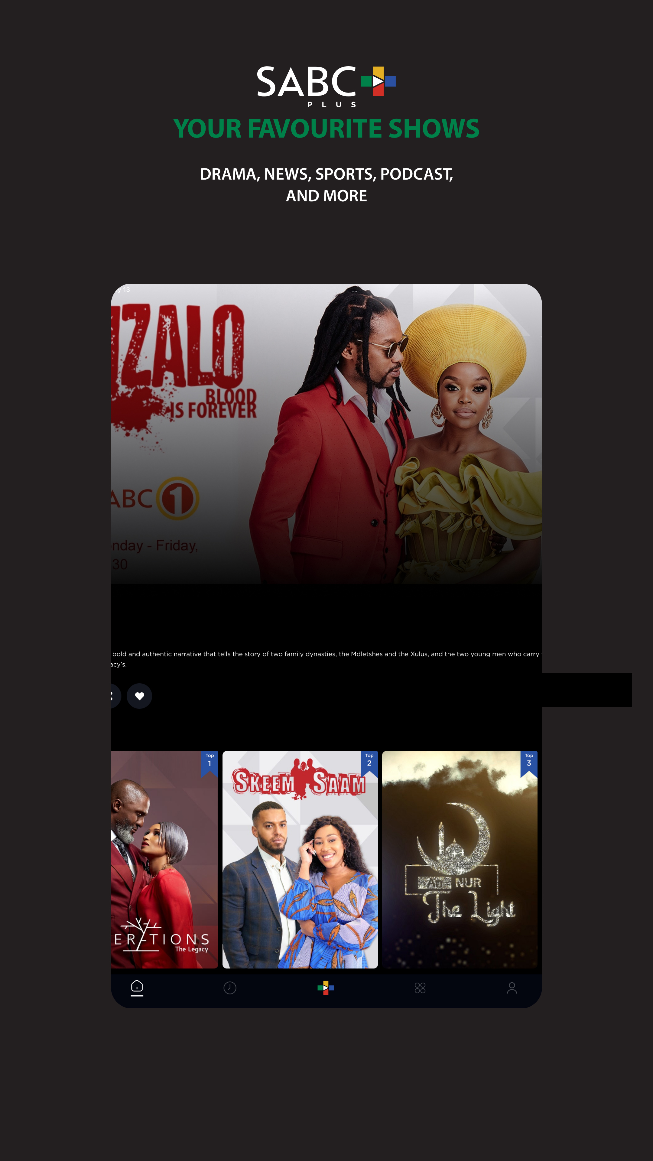 SABCPlus доставит вам самые любимые шоу, фильмы, новости, радио, спорт, сериалы и будничные драмы! Делая контент более доступным, siON с SABC 1 входит в SABC 2, Sisonke в SABC 3, а мы участвуем в игре с SABC Sport — у нас есть что-то для каждого! Забудьте о днях ожидания, чтобы увидеть драму – теперь вы можете следить за ней где угодно!
