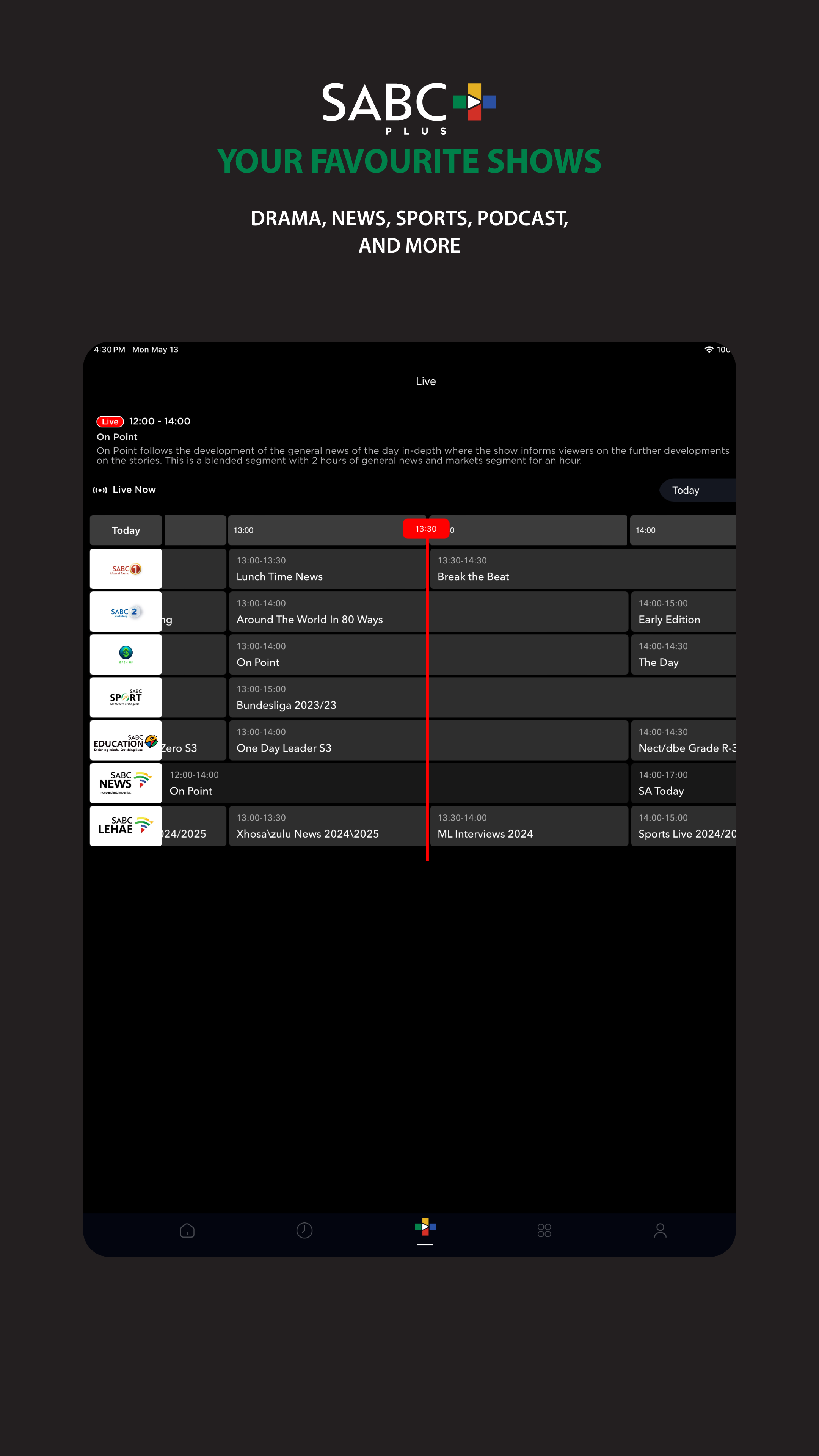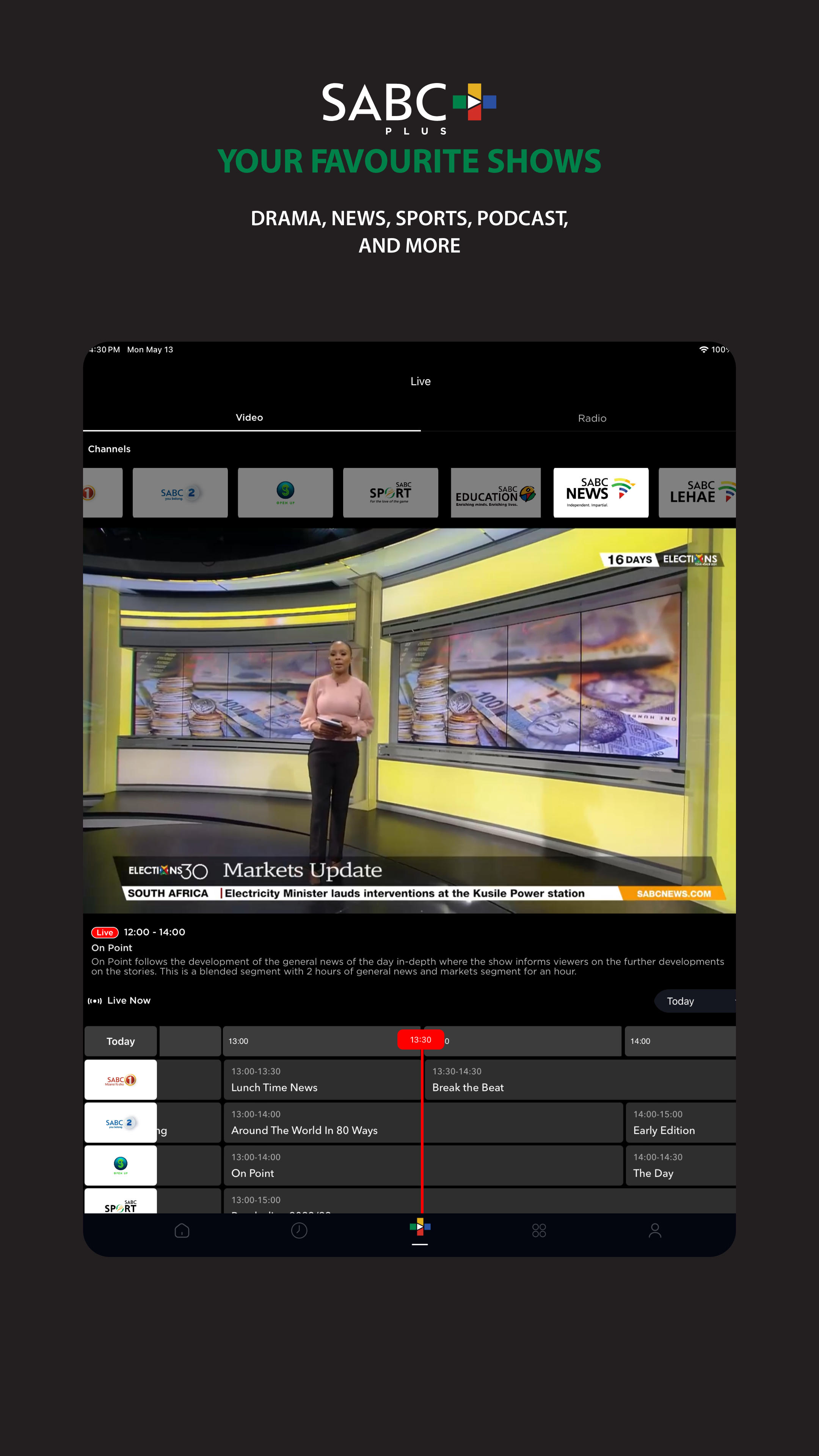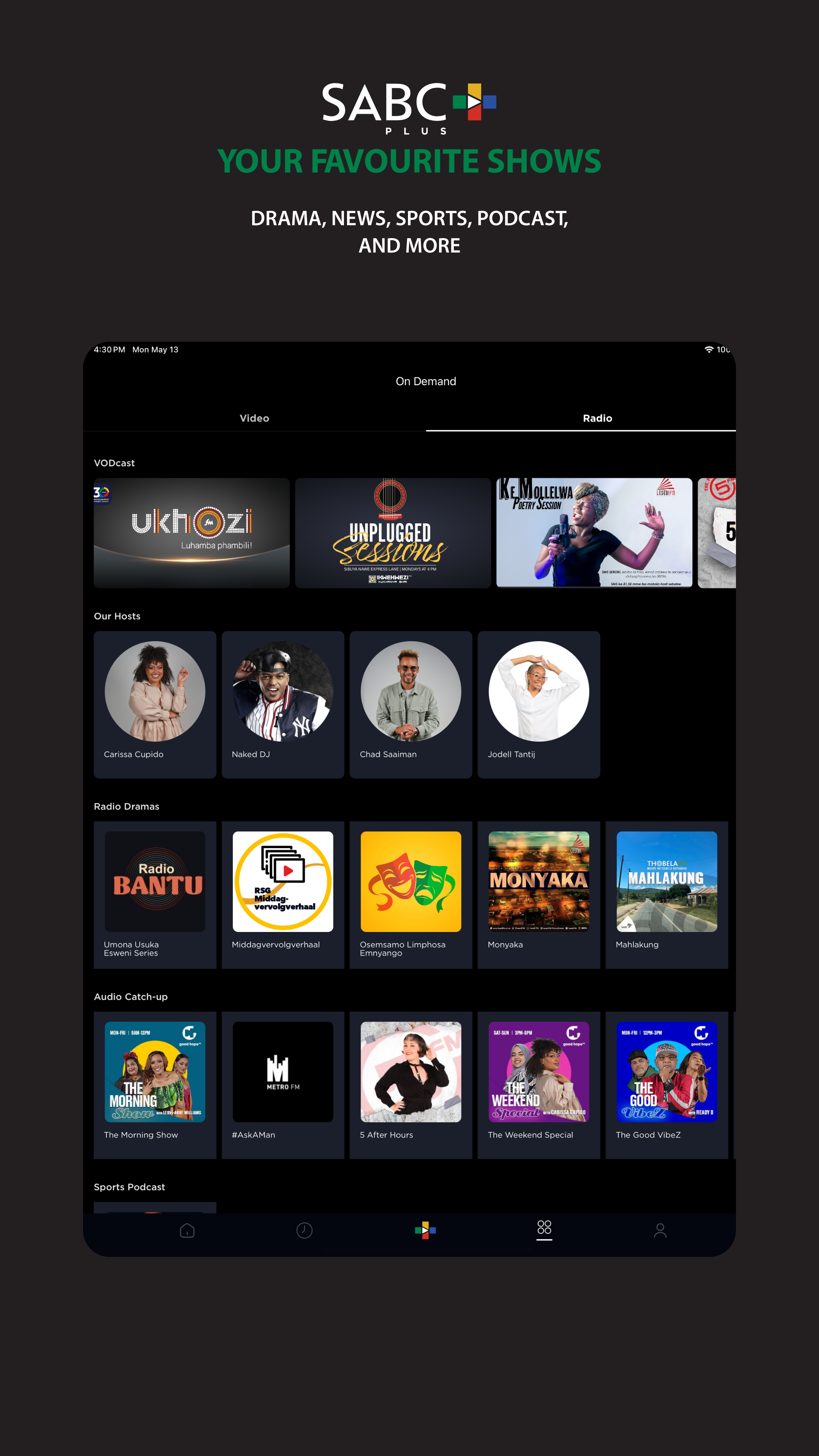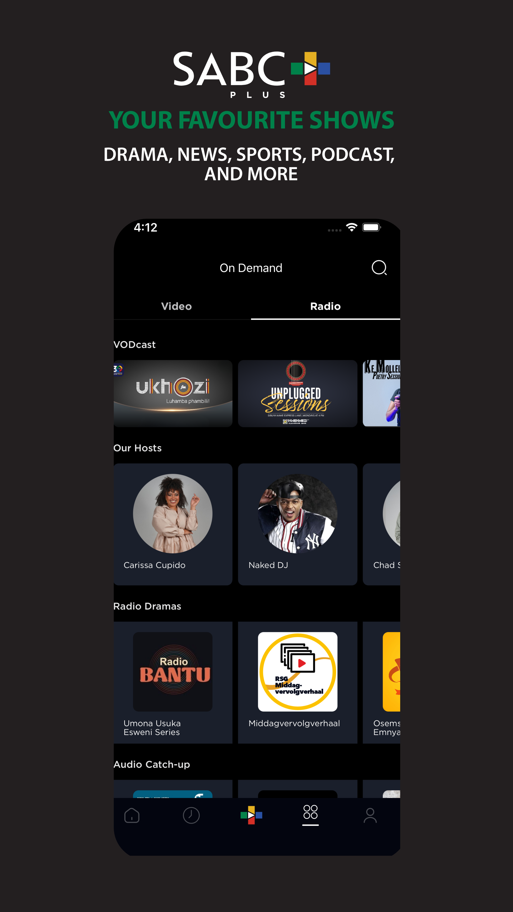 SABCPlus доставит вам самые любимые шоу, фильмы, новости, радио, спорт, сериалы и будничные драмы! Делая контент более доступным, siON с SABC 1 входит в SABC 2, Sisonke в SABC 3, а мы участвуем в игре с SABC Sport — у нас есть что-то для каждого! Забудьте о днях ожидания, чтобы увидеть драму – теперь вы можете следить за ней где угодно!
