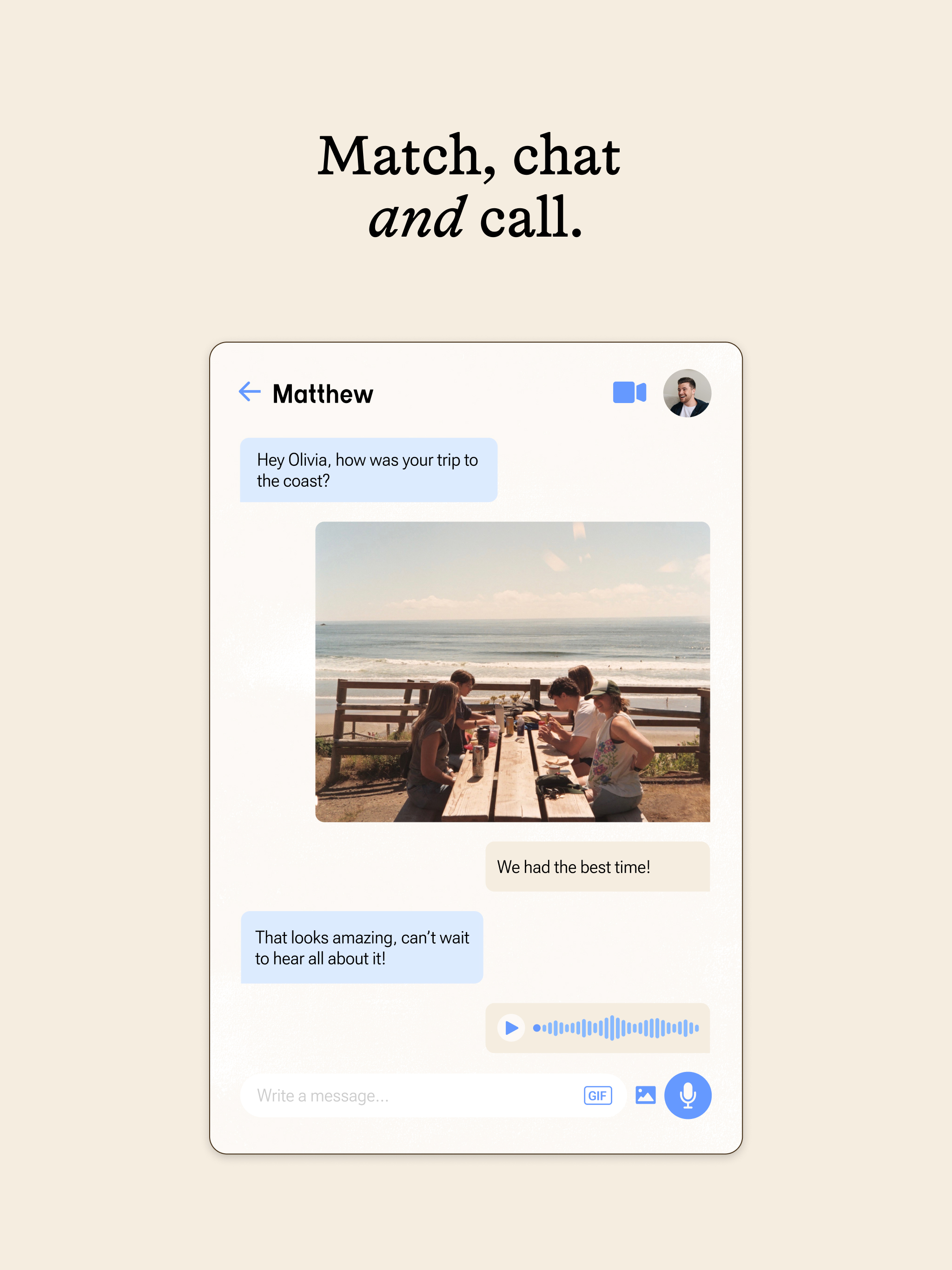 Заполните свой профиль, добавив несколько фотографий и ответив на несколько вопросов.