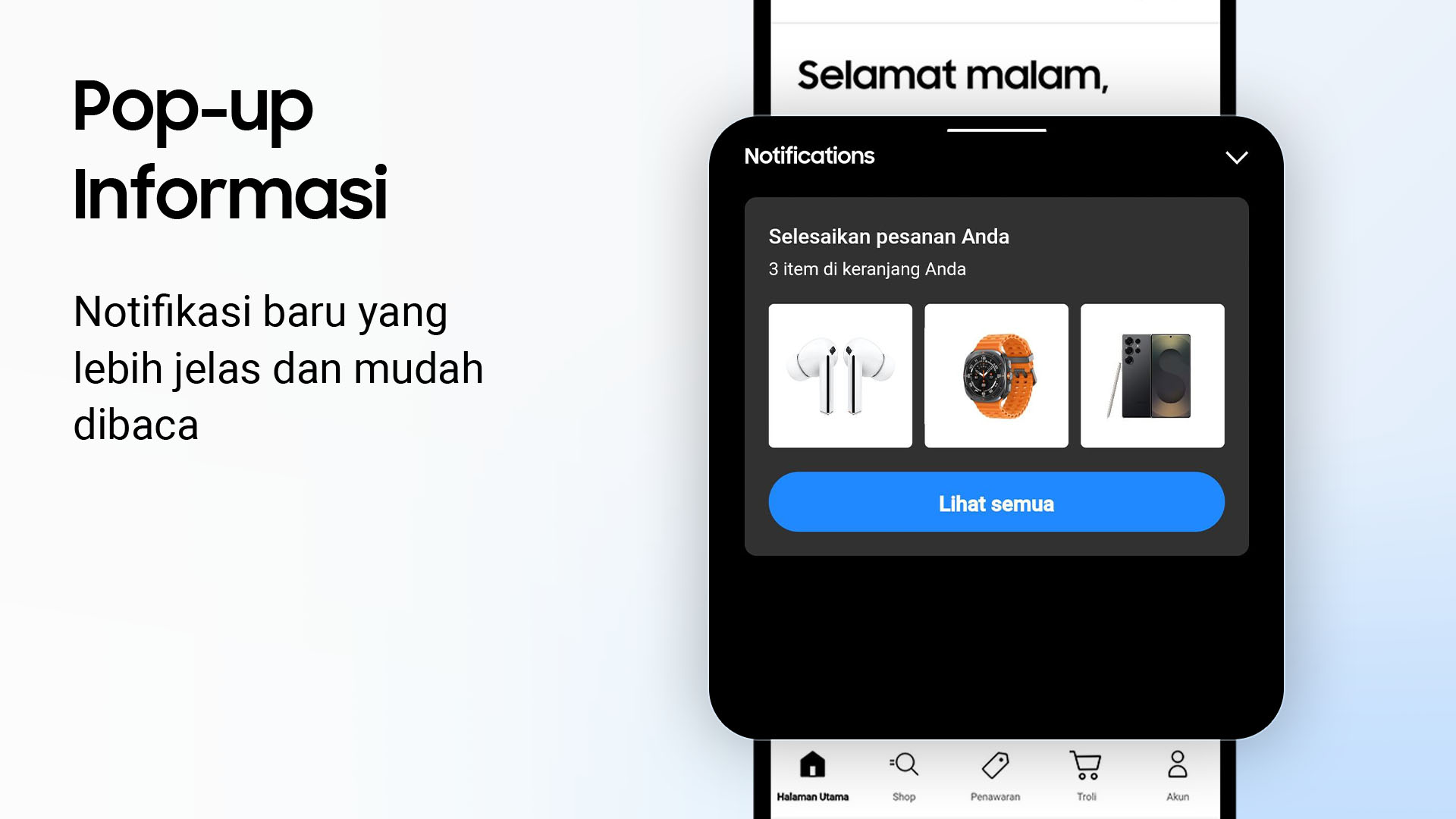 - Inilah Samsung Shop App — destinasi belanja teknologi terkini — hanya dengan satu sentuhan!