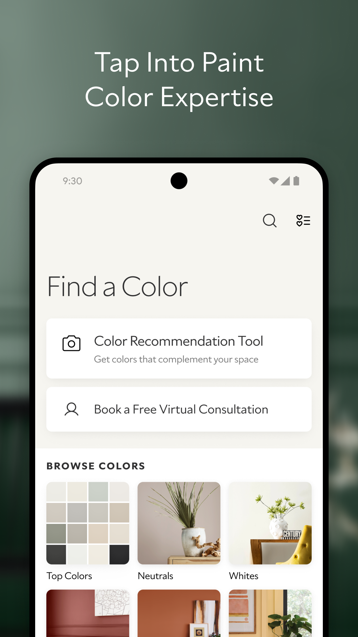 Найдите идеальную палитру с приложением Sherwin-Williams Color Expert™. Избавьтесь от неопределенности при выборе подходящего цвета краски для вашего следующего проекта. Color Expert — ваш инструмент для поиска идеального цвета и уверенного преображения пространства. Окунитесь в мир бесконечных возможностей и визуализируйте цвета, как никогда раньше.