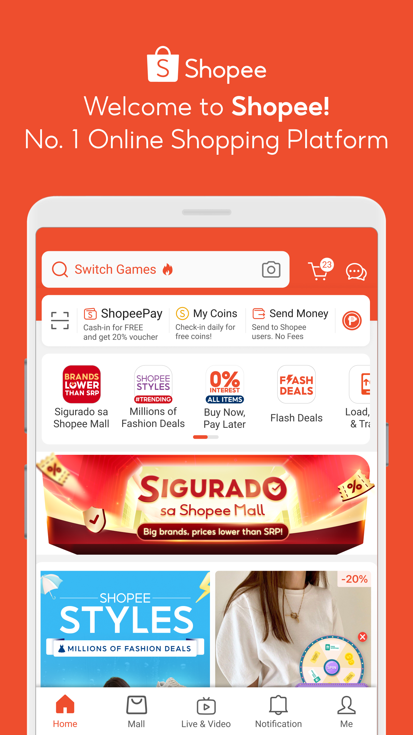 Shopee — ведущая платформа онлайн-торговли в Юго-Восточной Азии и на Тайване, предлагающая пользователям удобный и бесперебойный шопинг. Покупайте популярные товары на Филиппинах и получайте надежную поддержку в сфере оплаты и логистики, а также безопасную онлайн-торговлю и быструю доставку. Воспользуйтесь выгодными предложениями, такими как кэшбэк и ваучеры Shopee Coins. С этим приложением для покупок вы можете легко покупать онлайн одежду, косметику, товары для дома и многое другое!