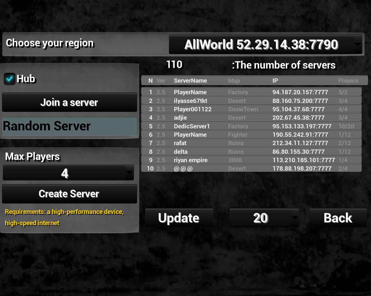-4 режима игры (Классический,Воскрещение,Захват флага,Режим зомби)