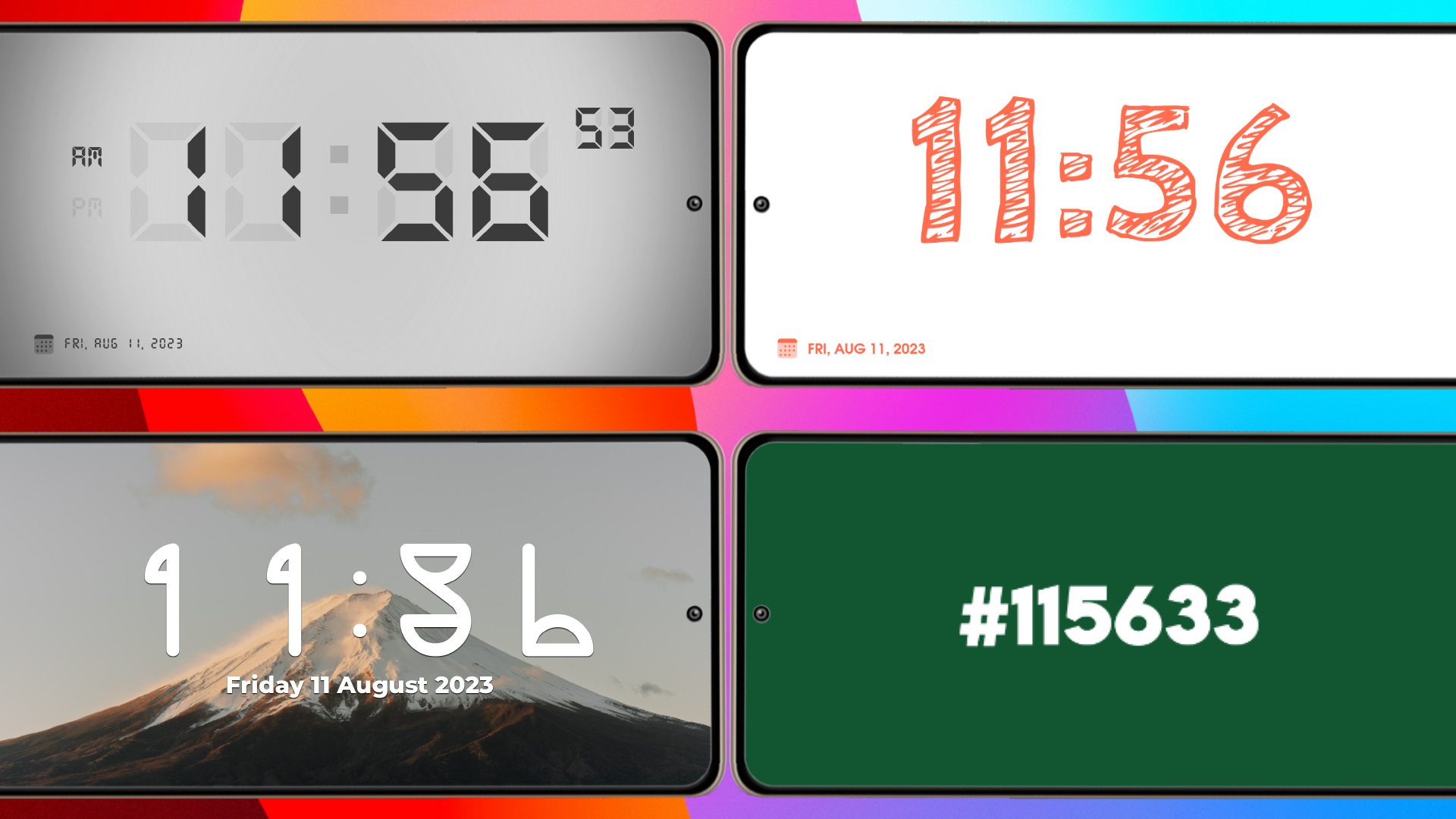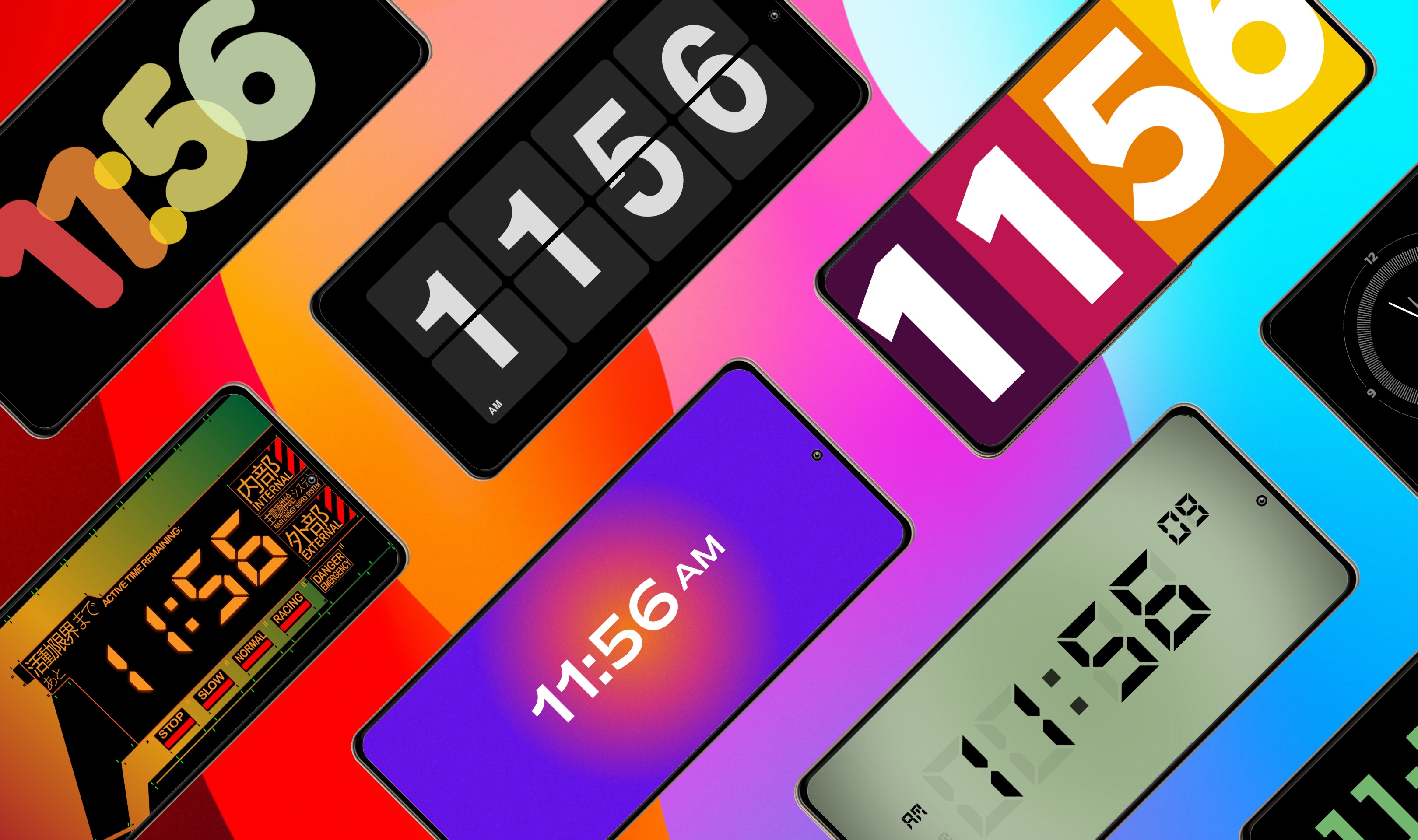 Преобразите свой экран с помощью разнообразных полноэкранных цифровых и аналоговых часов: