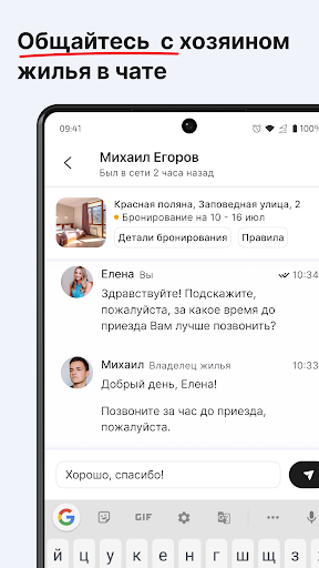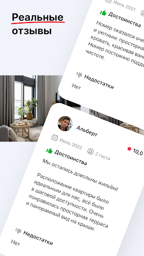 Смотрите реальные фотографии и отзывы при поиске жилья для отдыха и работы. Если при аренде апартаментов появятся вопросы, напишите владельцу прямо в приложении. После бронирования вы сможете позвонить ему по телефону.