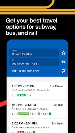 Официальное универсальное приложение для метро, автобусов и пригородных железных дорог MTA (Long Island Rail Road и Metro-North).