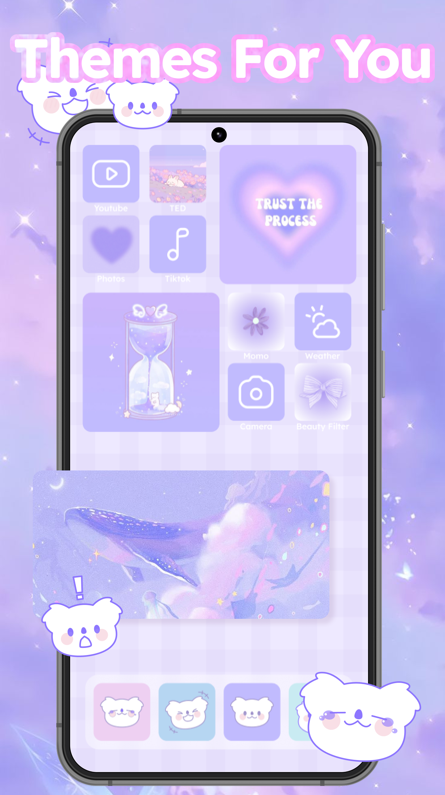 Любите ли вы мягкие пастельные тона, смелую неоновую атмосферу, стиль K-pop или чистую минималистическую эстетику, с Themebox персонализировать ваше устройство будет легко и весело. ✨