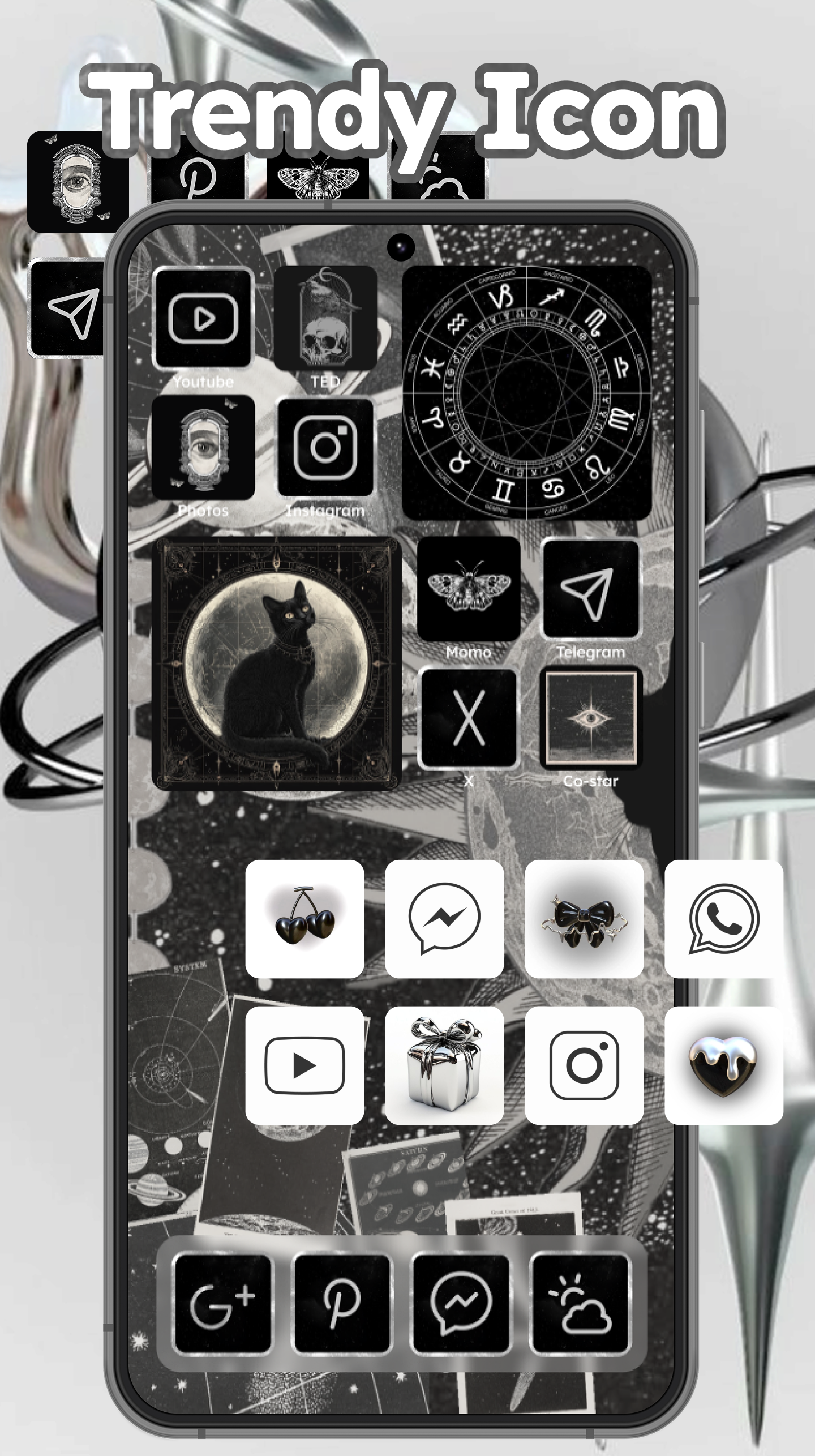 Изучите широкий выбор пакетов значков и придайте своим приложениям новый вид! Инструмент смены значков позволяет смешивать и сочетать стили, шрифты, прозрачность и фон — от милых и красочных до элегантных и современных. Настройте имена и создайте идеальную комбинацию значков, соответствующую вашей атмосфере!