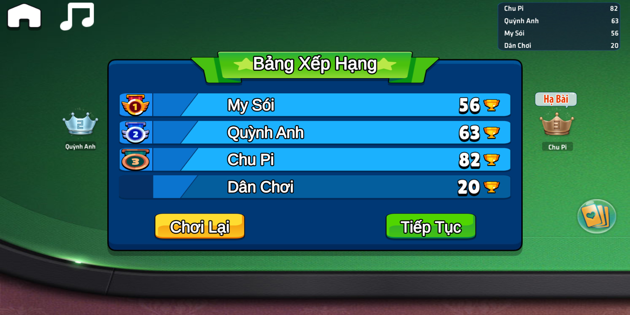 Пожалуйста, скачайте и попробуйте играть сейчас в Tien Len Mien Nam Offline.
