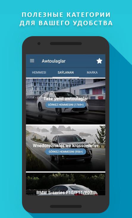 Самый популярный в Туркменистане ресурс об автомобилях. В этом приложении вы найдете: самую большую базу объявлений о продаже новых и подержанных машин, самые подробные каталоги моделей.