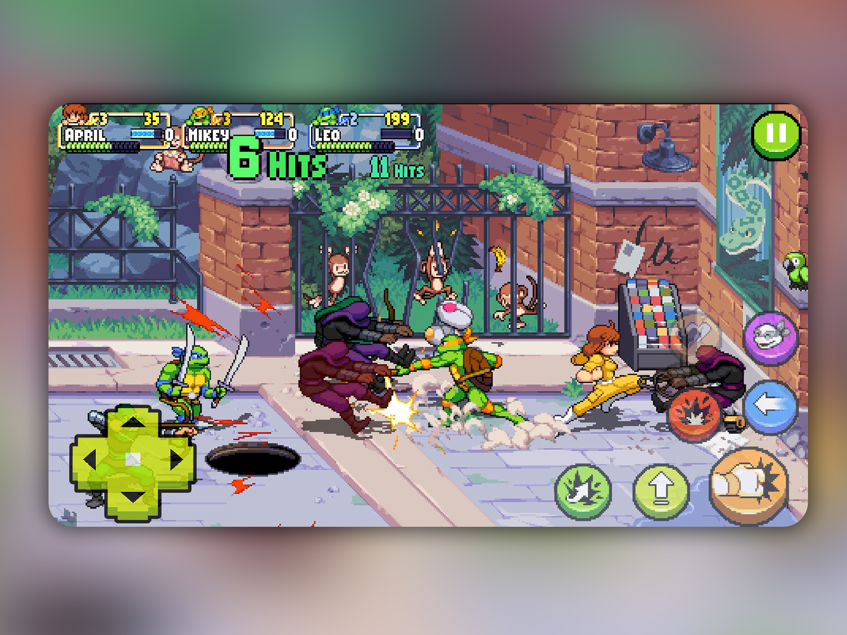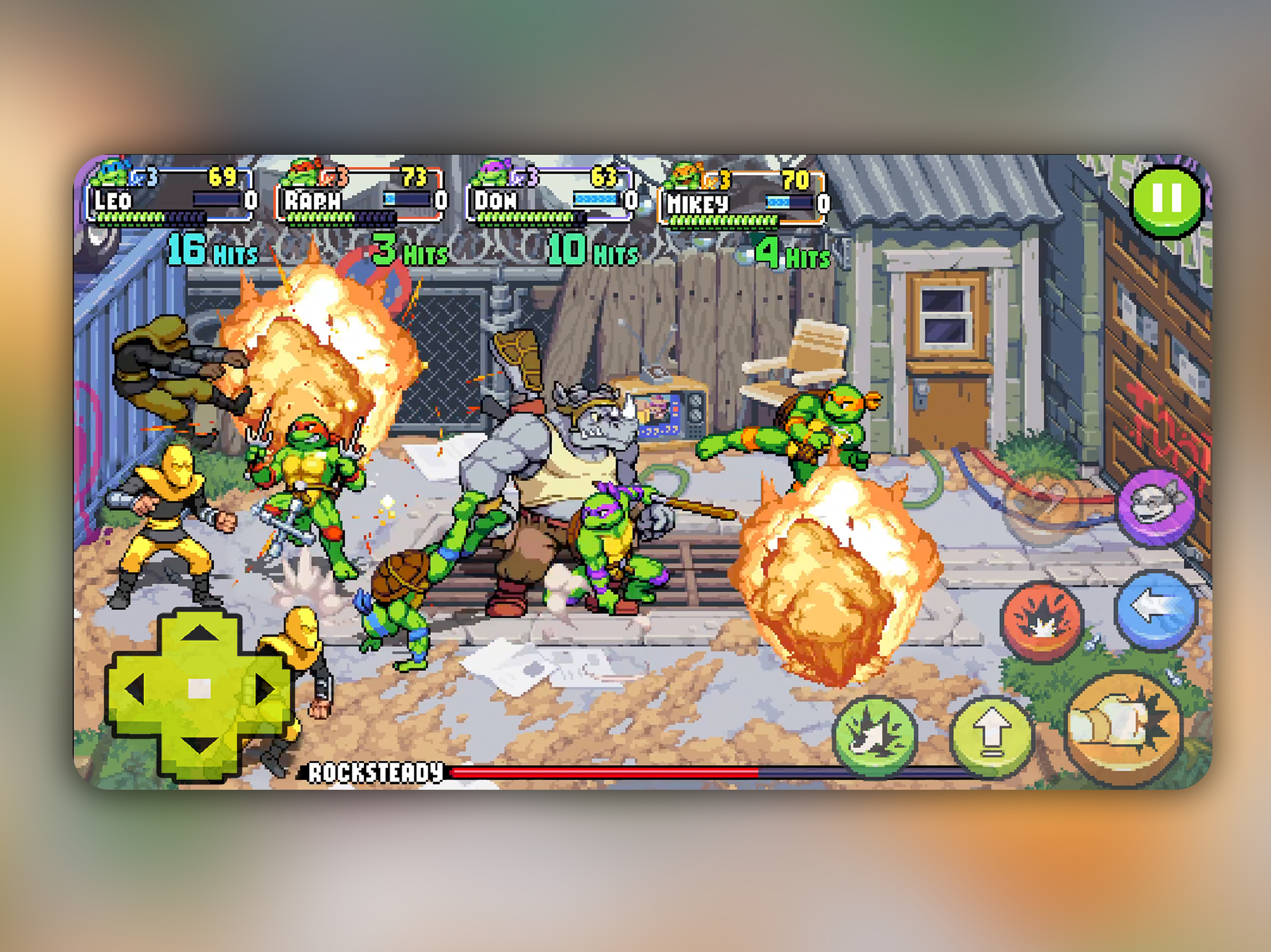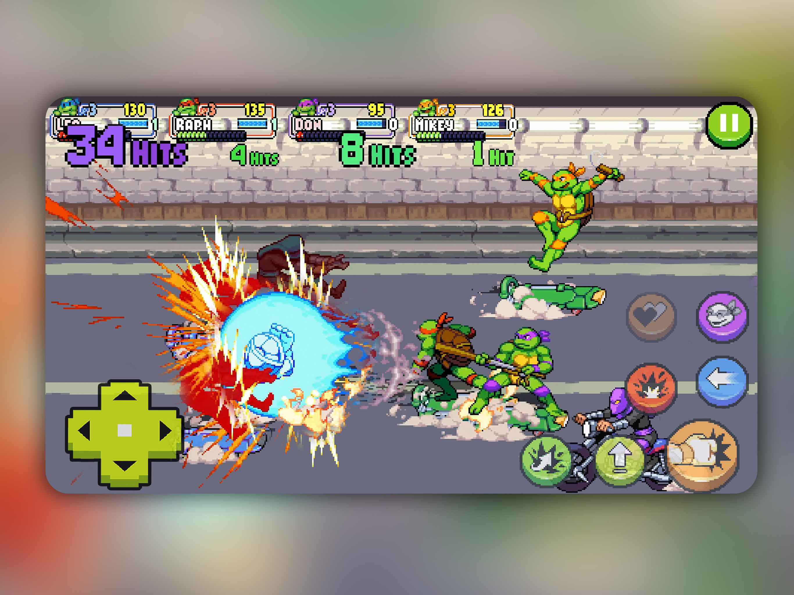Только для пользователей Netflix с подпиской. Сражайтесь вместе с Леонардо, Рафаэлем, Донателло и Микеланджело, а также другими персонажами в этом ретро-файтинге в стиле 80-х. Кавабанга! Они смышленые, они зеленые и разъяренные! Сражайтесь вместе с черепашками-ниндзя, чтобы помешать коварным планам Крэнга и Шреддера. В этом потрясающем ретро-файтинге вам предстоит относительно долгий путь, созданный в классическом стиле вселенной черепашек-ниндзя. Сразитесь с Бакстером Стокманом, Трицератоном и другими старыми добрыми врагами на десятке различных уровней, продемонстрировав свои опасные ниндзя-комбо. Возможности: • Вы можете играть за легендарных персонажей «Черепашек-ниндзя» — Леонардо, Рафаэля, Донателло и Микеланджело, также впервые можно выбрать Эйприл, Сплинтера или Кейси Джонса! • Наслаждайтесь олдскульным геймплеем с современной файтинг-механикой. • Отправьтесь в совершенно новое приключение в увлекательном режиме истории. • Перенеситесь в 80-е благодаря ностальгическому дизайну с полноцветной пиксельной ретро-графикой. • Оцените крутой саундтрек Ти Лопеса.• В игре поддерживаются Bluetooth-контроллеры. - Разработчики и издатели: Nickelodeon, Playdigious, Tribute Games, Dotemu.