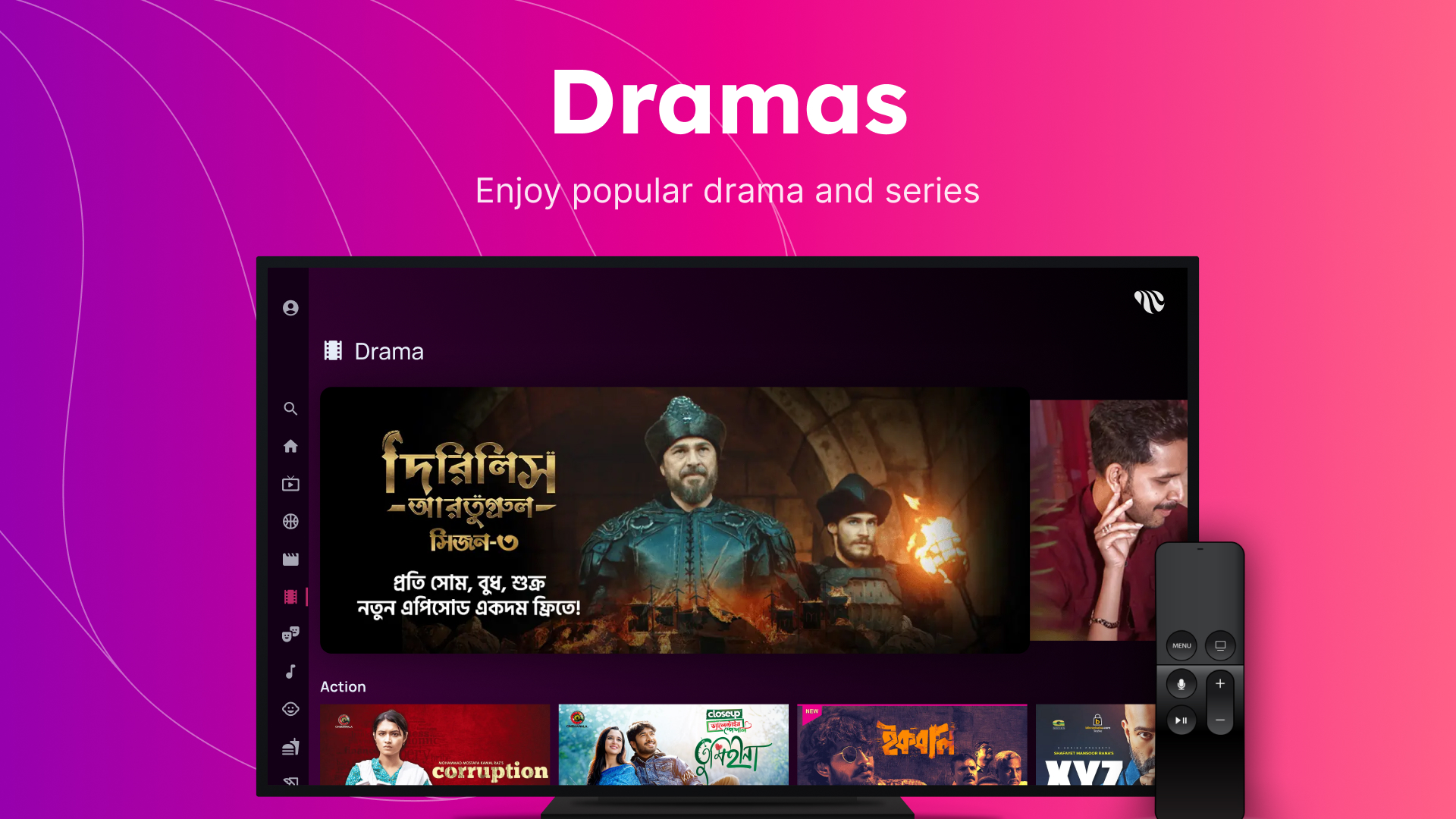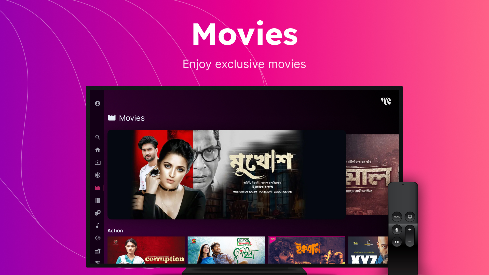 - Эксклюзивные веб-сериалы и фильмы: получите доступ к обширной коллекции популярного бангладешского и международного контента.