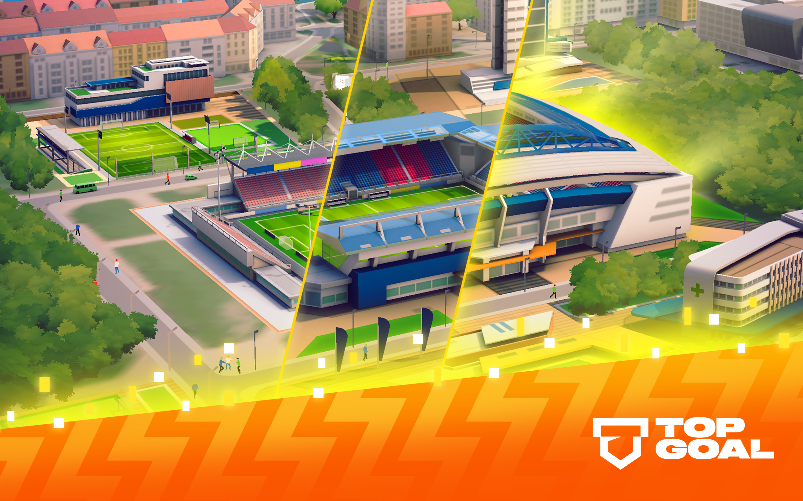 -¡Construye una ciudad dedicada a ayudarte a alcanzar tus sueños futbolísticos! Todas las instalaciones están contempladas en Top Goal, y tus victorias impulsarán la expansión.