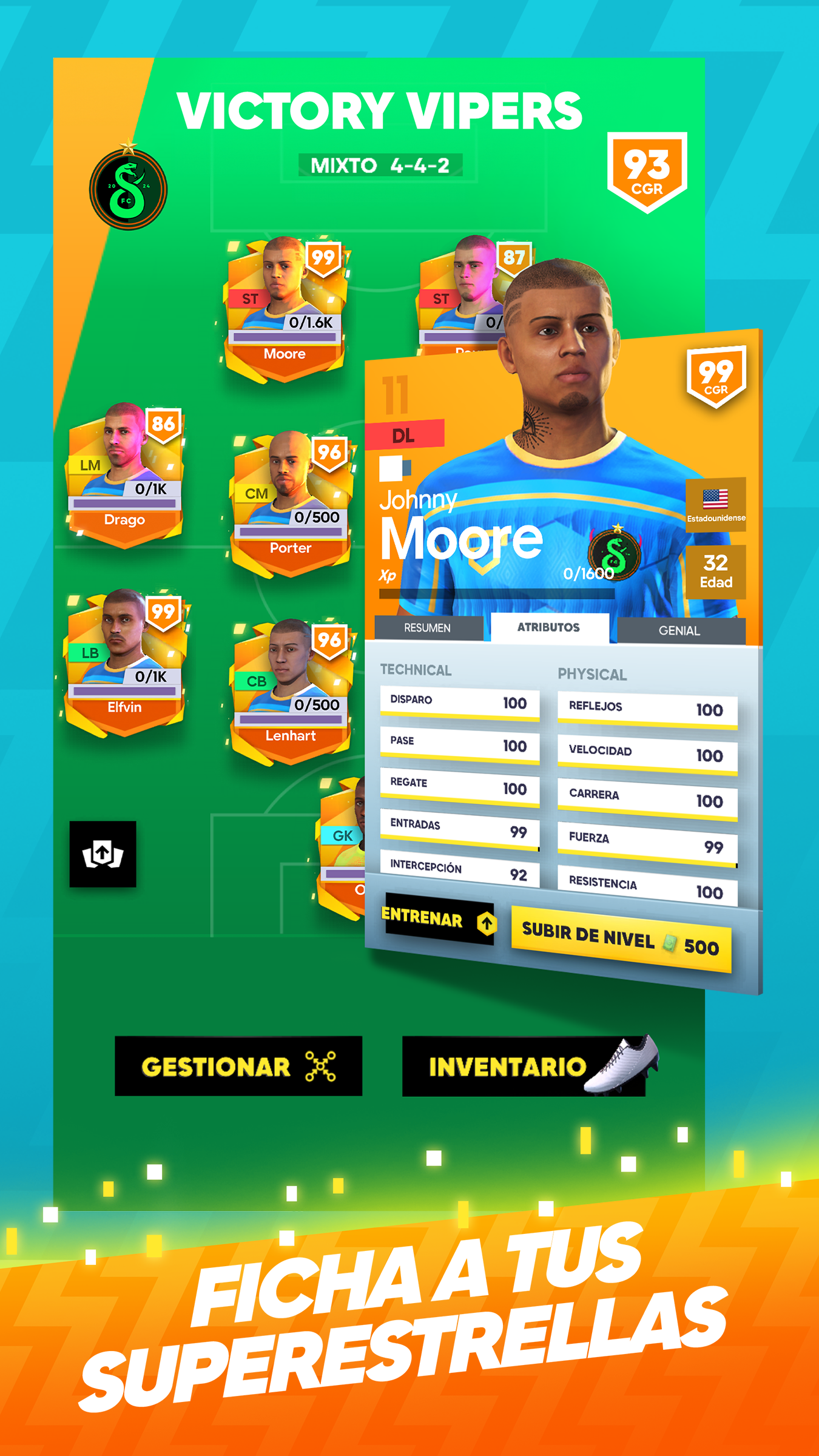 -Potencia a tus jugadores y conviértelos en leyendas de talla mundial. Desde tu primer partido de fútbol, sus habilidades son tuyas para que las adaptes y elijas.