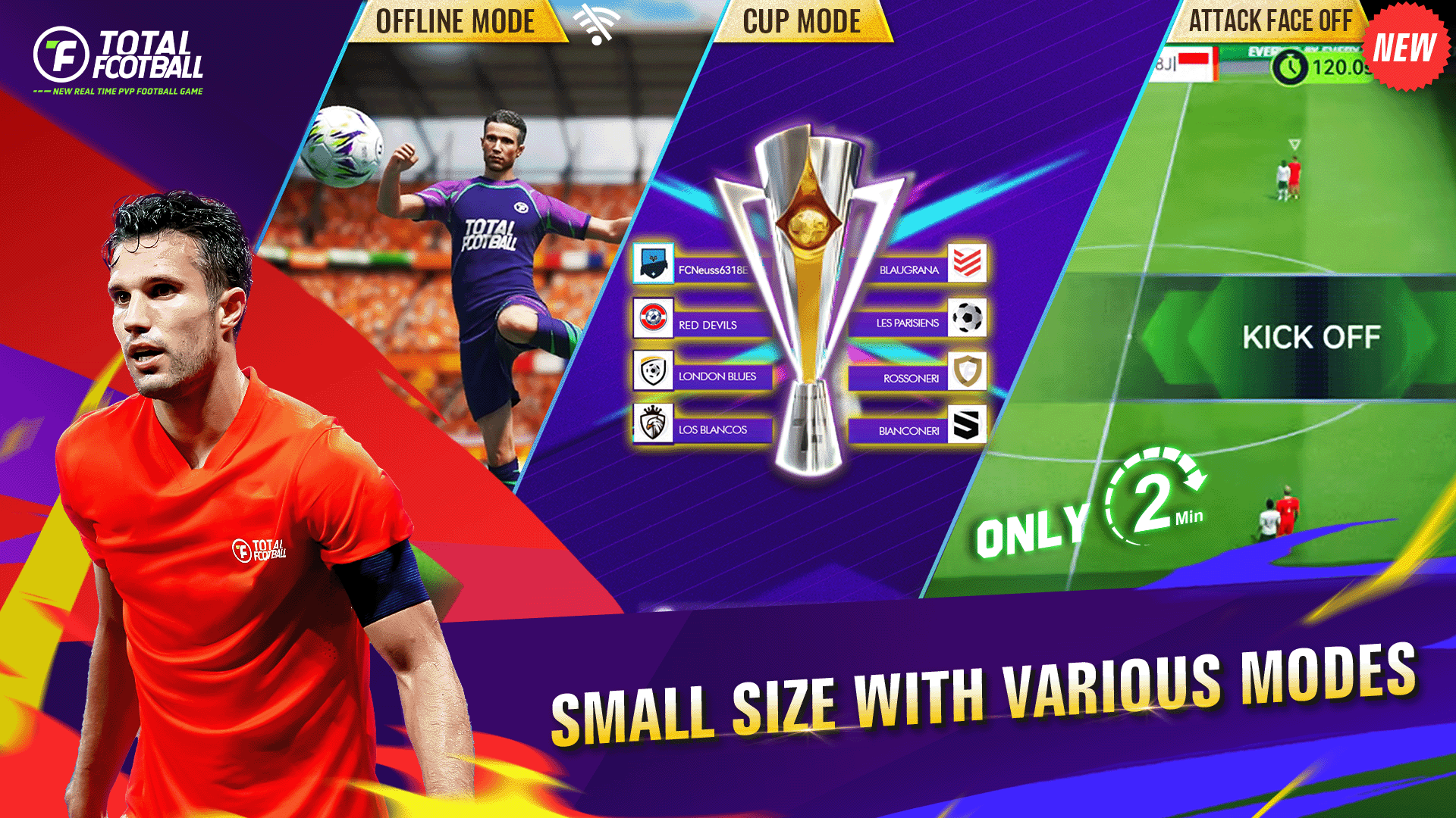Total Football - Game Sepak Bola Mobile Ringan. Dirancang untuk memberikan pengalaman sepak bola yang seru dan realistik dimana saja dengan kontrol yang mudah! Bisa dimainkan secara offline & online!