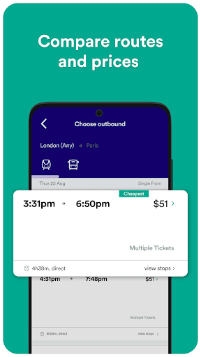 Одно приложение для сравнения и покупки билетов на поезд и автобус, а также просмотра расписания в Великобритании и Европе.