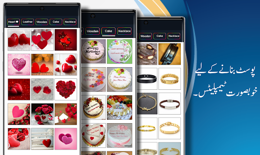 Урду на фото: приложение Urdu Post Master предоставляет вам различные типы шаблонов, такие как Сердце, Кожа, Ожерелье, Случайный выбор, Торт, Кубок и многое другое. Используя эти шаблоны и фреймы, вы можете легко создавать посты в социальных сетях или свои посты воображения, новости, флексмейкер, стихи и шутки. Вы также можете использовать эти рамки для отправки приглашений на день рождения и заметок с пожеланиями.