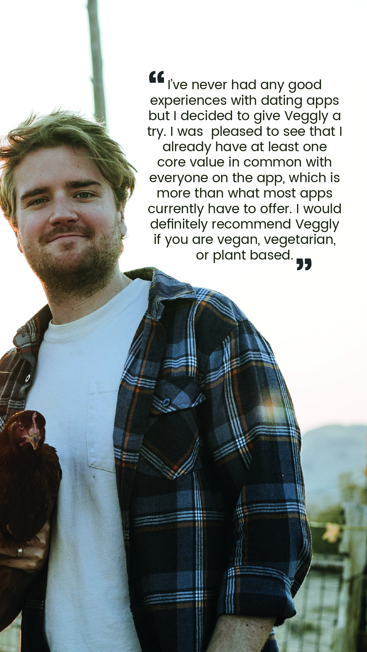 ★ «У меня никогда не было хорошего опыта работы с приложениями для знакомств, но я решила попробовать Veggly. Оно выделялось среди других приложений, потому что было создано для веганов и вегетарианцев. Это был гораздо лучший опыт, чем я мог себе представить. Мне было приятно видеть, что у меня уже есть по крайней мере одна общая ценность со всеми участниками приложения, а это больше, чем то, что в настоящее время могут предложить большинство приложений. Я познакомилась со своим парнем через Veggly, поэтому я должна поблагодарить их за то, что они дали нам возможность встретиться, за то, что я так безнадежно и безумно влюбилась в него. Я определенно рекомендую Veggly, если вы веган, вегетарианец или растительный. Каждому нужно есть, чтобы жить, а свидания - намного лучший опыт, когда вы можете договориться о том, что вам нужно делать каждый день ». - Виктория, из Канады