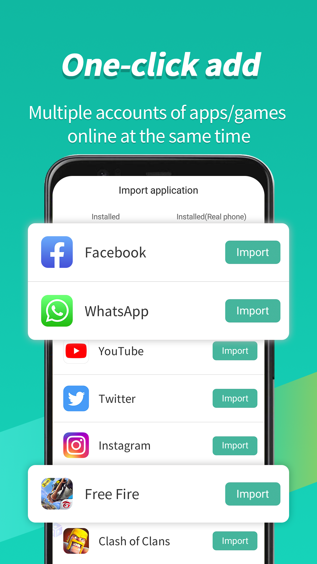 Игры и приложения клонируются после импорта в Virtual Android, что означает, что вы можете запускать несколько учетных записей одновременно на одном устройстве через нашу высокоскоростную виртуальную систему. Используйте нашу виртуальную среду в своих интересах и одновременно наслаждайтесь двумя копиями ваших любимых приложений для обмена мгновенными сообщениями или параллельными копиями любимой игры, чтобы удвоить свой опыт. Мы все это поддерживаем!