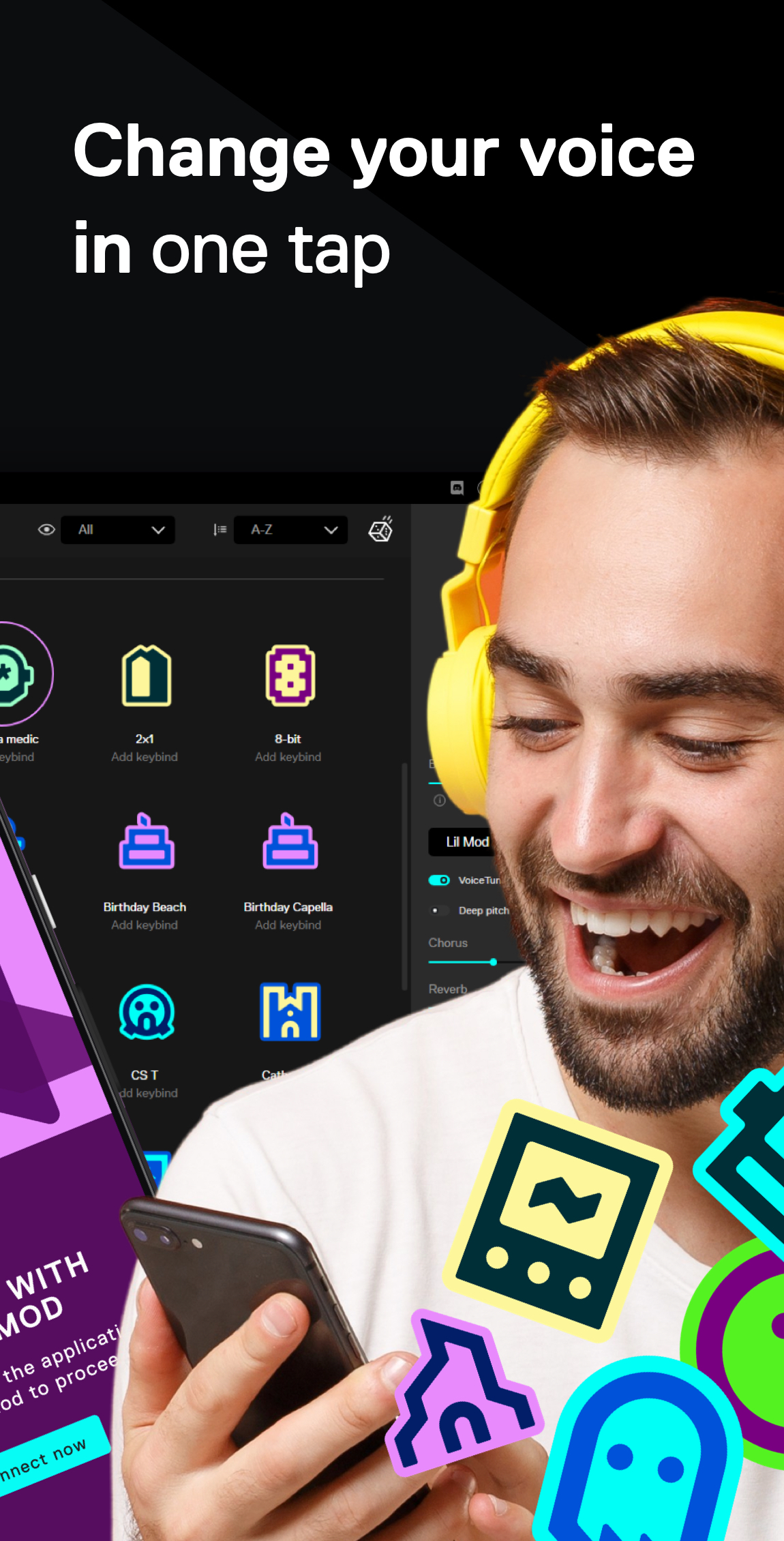 Voicemod APK — это удобное мобильное приложение для изменения голоса, которое уже давно стало хитом среди геймеров и стримеров. Теперь вы можете использовать любимые голосовые фильтры прямо на Android-смартфоне.