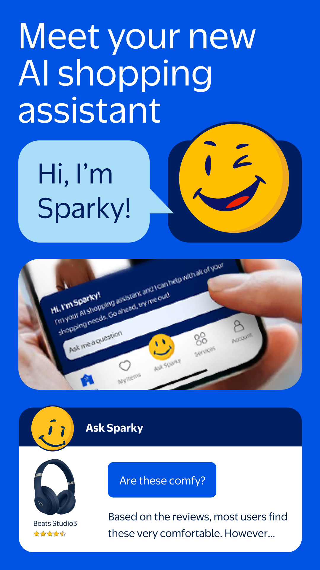 Задайте своему помощнику по покупкам на базе искусственного интеллекта любые вопросы, чтобы быстрее находить нужные товары, получать рекомендации и совершать покупки эффективнее.