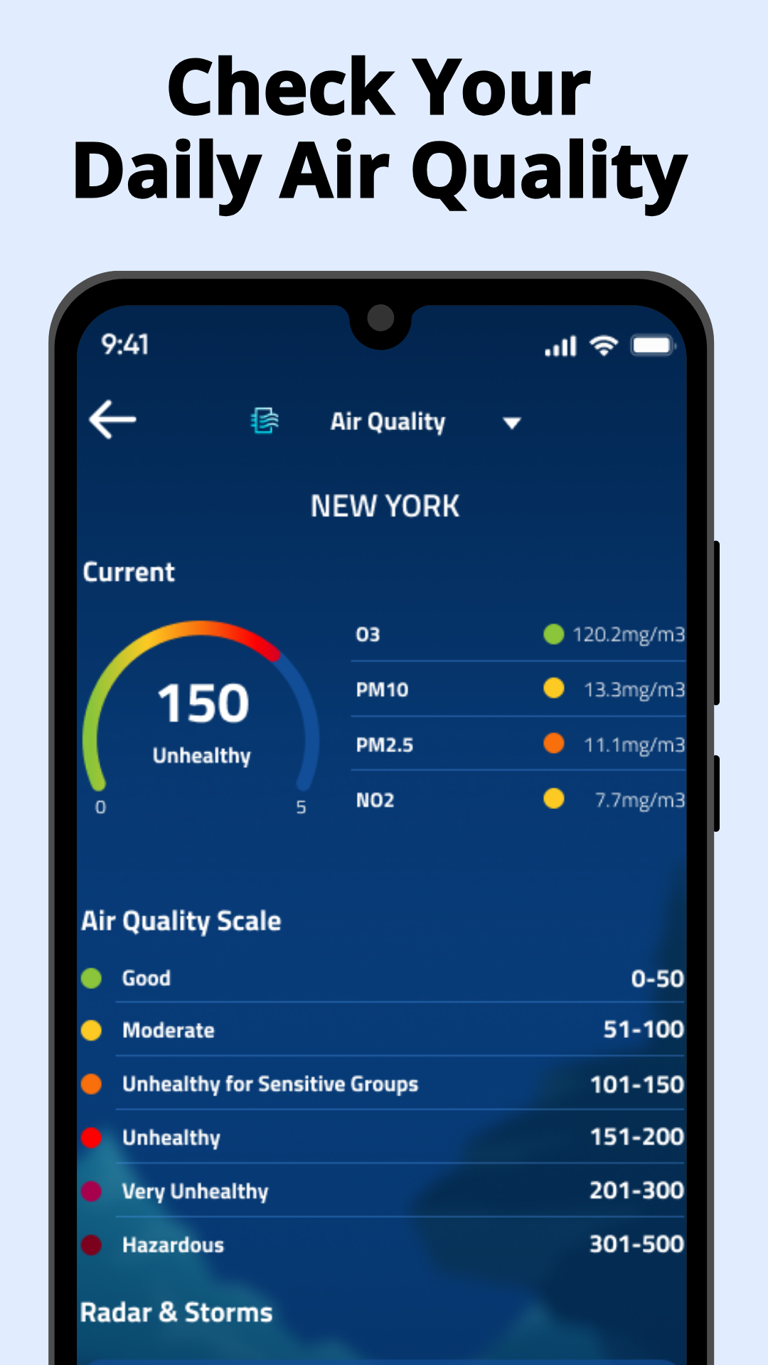 Точные данные радара США: обнаруживайте дождь, снег, смешанные осадки и загрязнение воздуха.