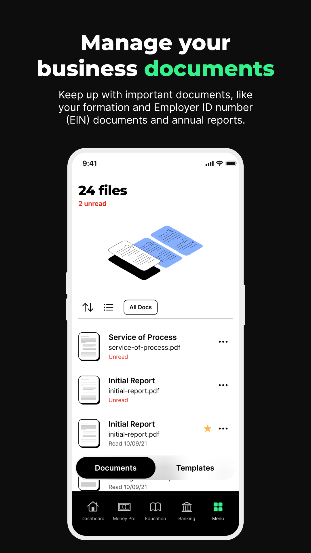 Следите за важными документами, такими как документы о вашем образовании и идентификационном номере работодателя (EIN) и годовые отчеты. Если вы получаете какие-либо официальные документы от государства, вы можете получить к ним доступ в своем Центре документов.